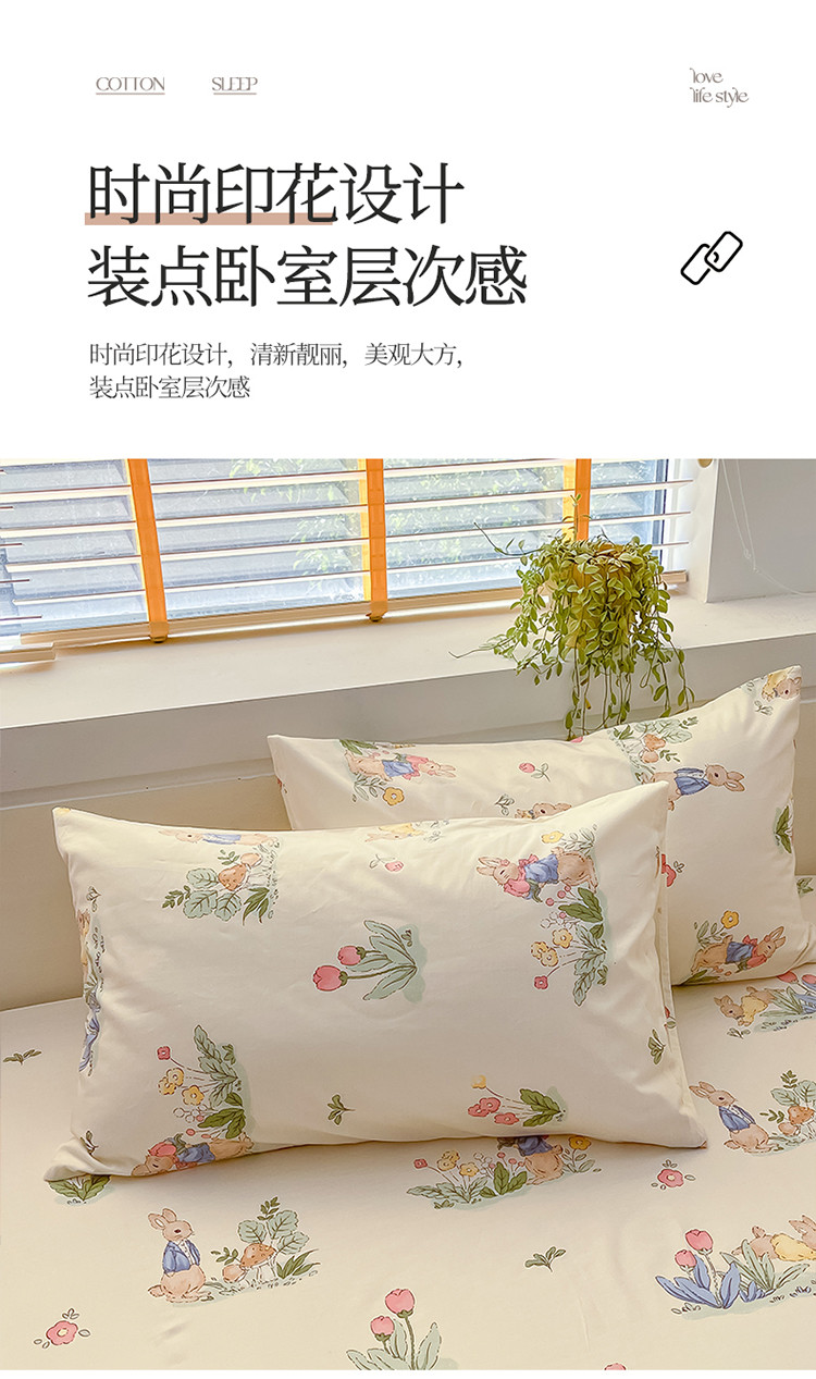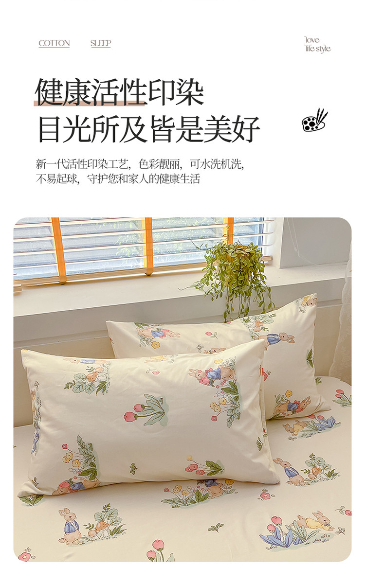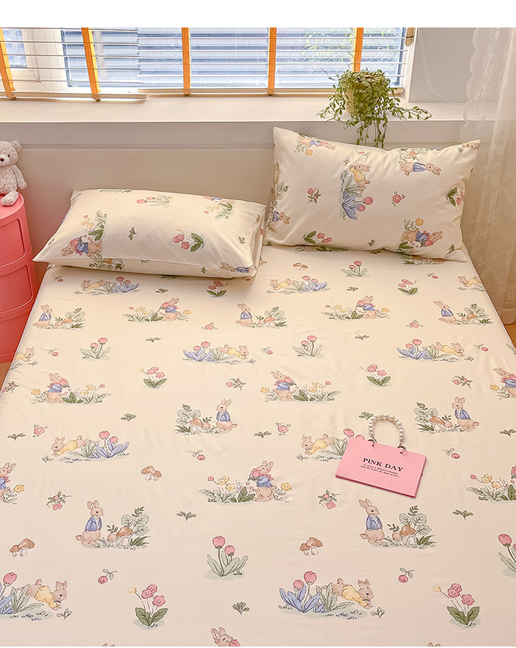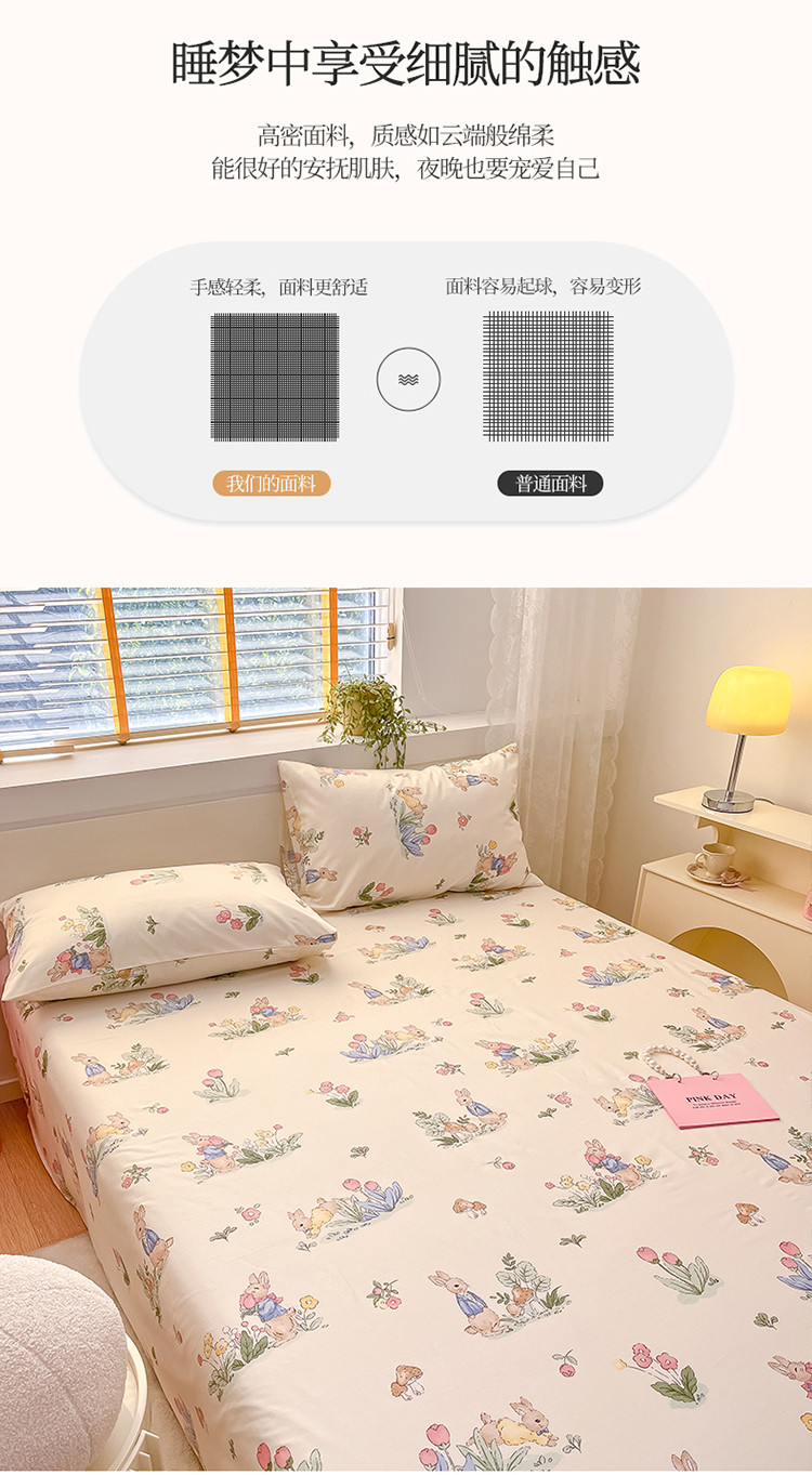 (总)蓝邻家纺 2024新款小清新印花全棉四件套学生宿舍三件套,茶园兔,风翩,机灵兔熊,可妮露,藤蔓兔,筱薇