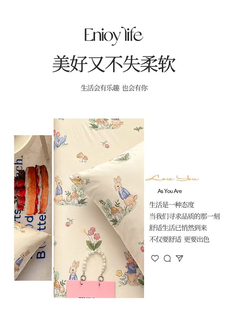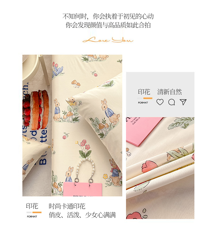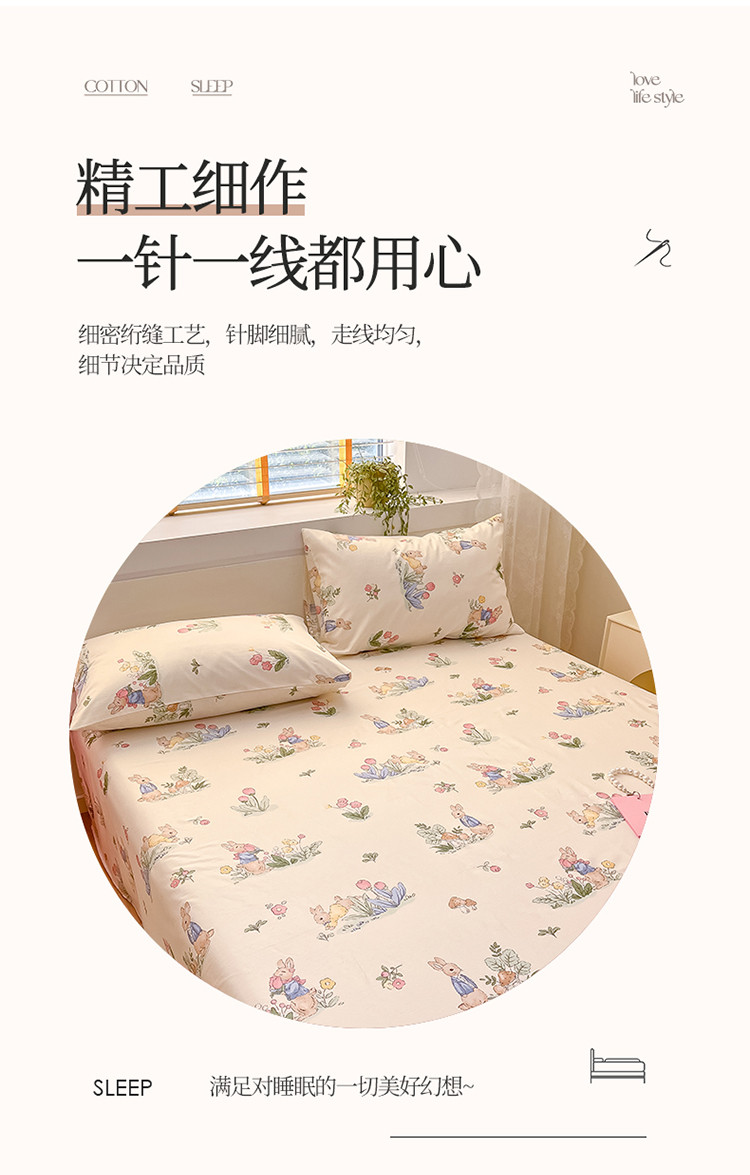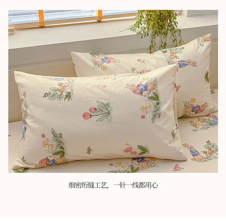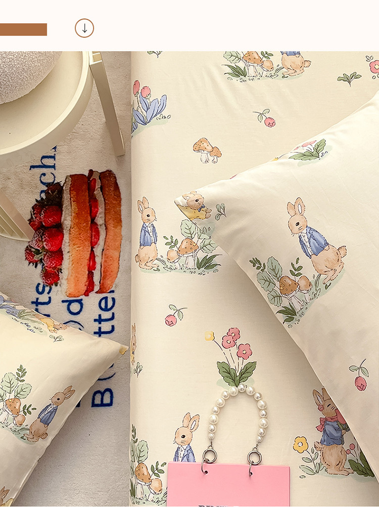 (总)蓝邻家纺 2024新款小清新印花全棉四件套学生宿舍三件套,茶园兔,风翩,机灵兔熊,可妮露,藤蔓兔,筱薇