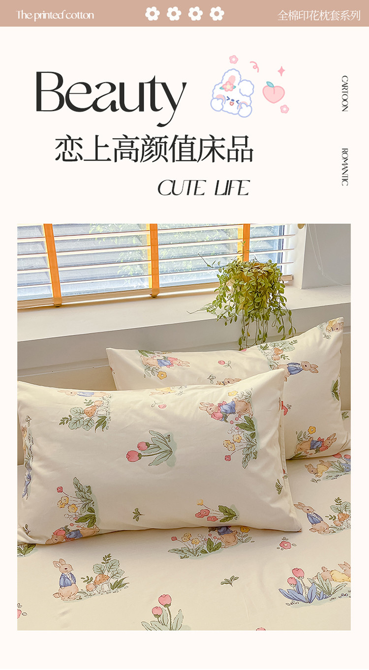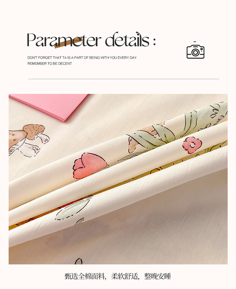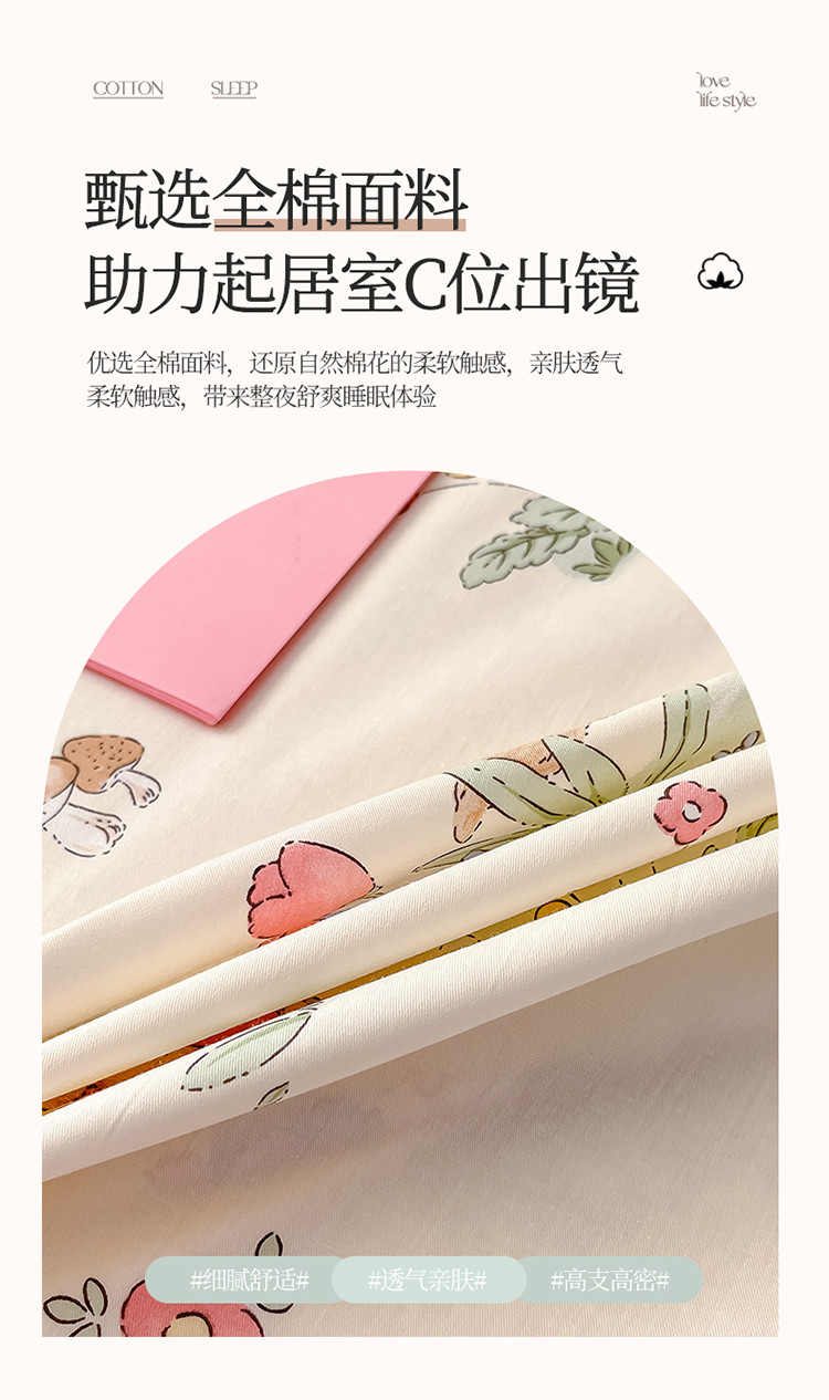 商品名称:2023新款全棉印花小清新系列-单枕套 蘑菇屋