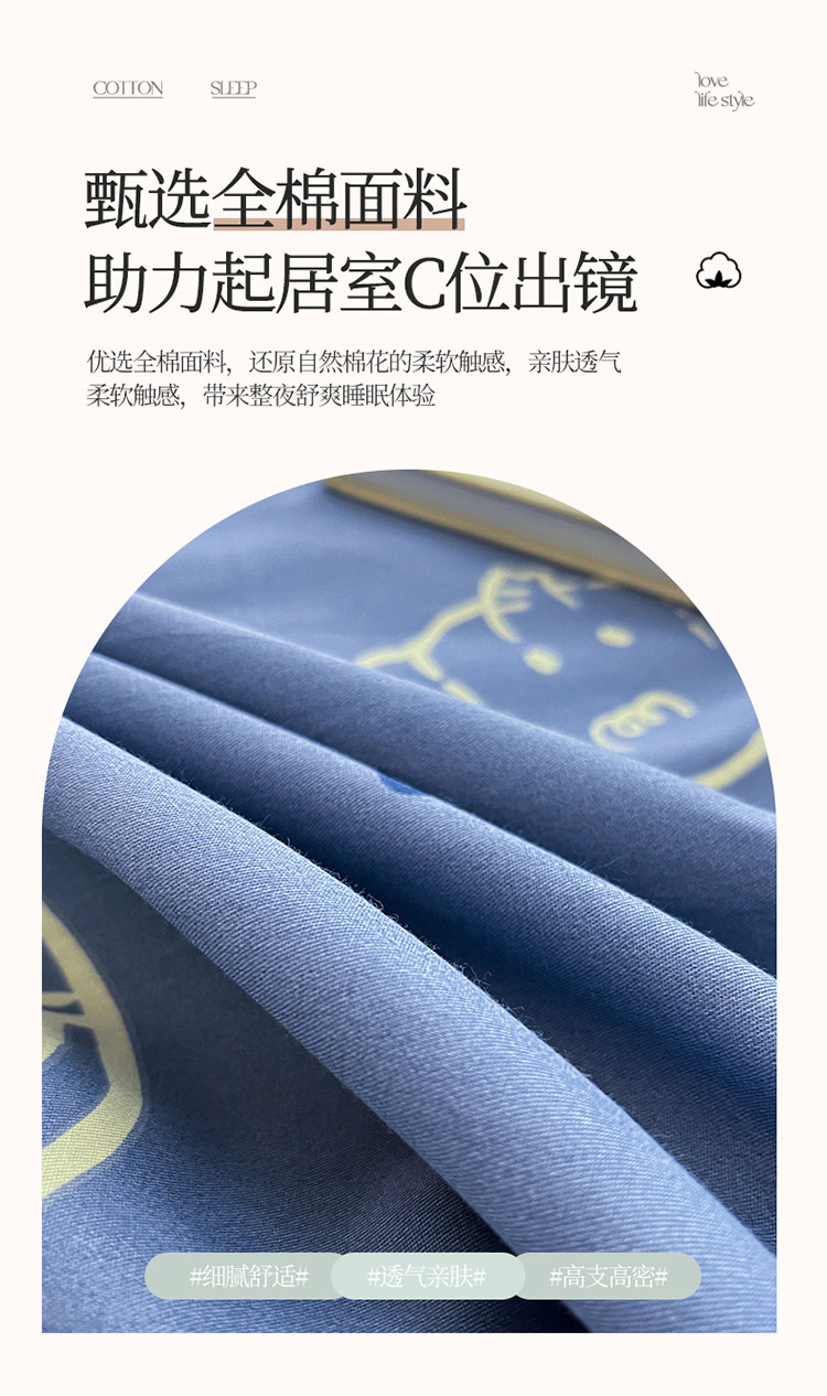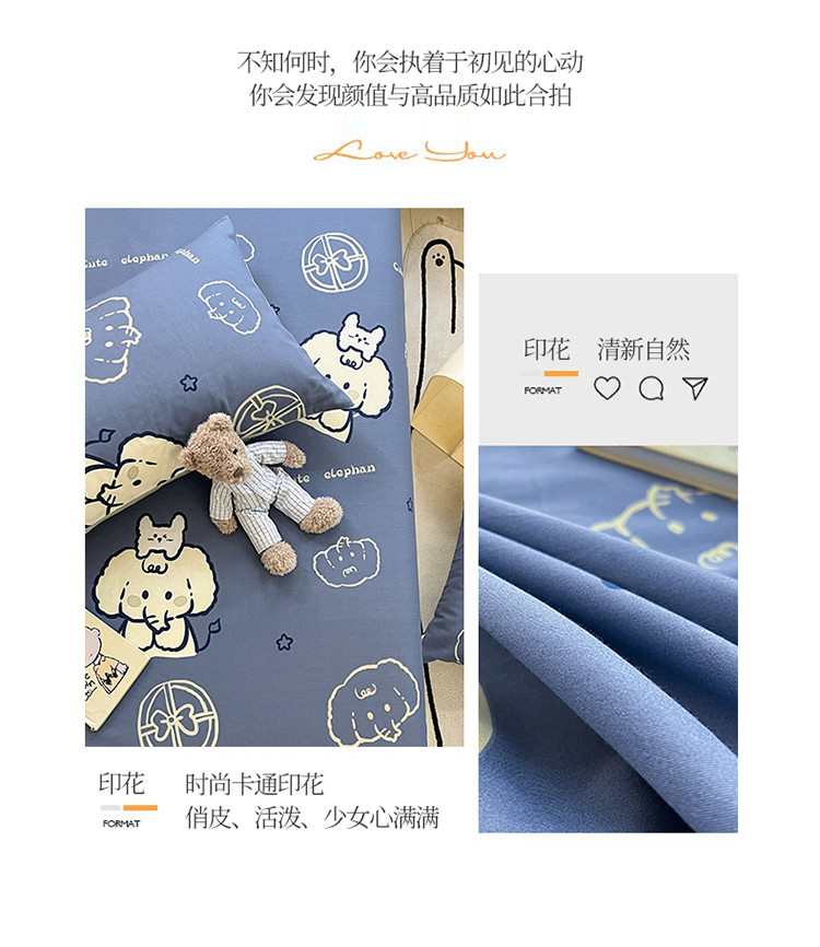 (总)蓝邻家纺 2024新款小清新印花全棉四件套学生宿舍三件套,茶园兔,风翩,机灵兔熊,可妮露,藤蔓兔,筱薇