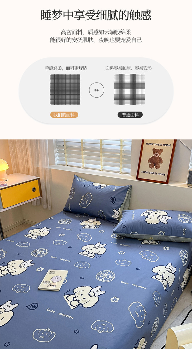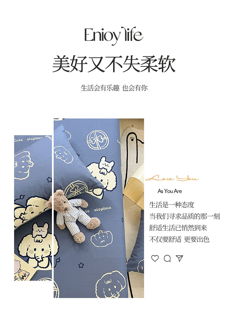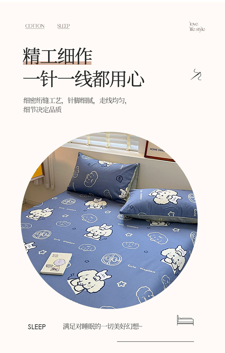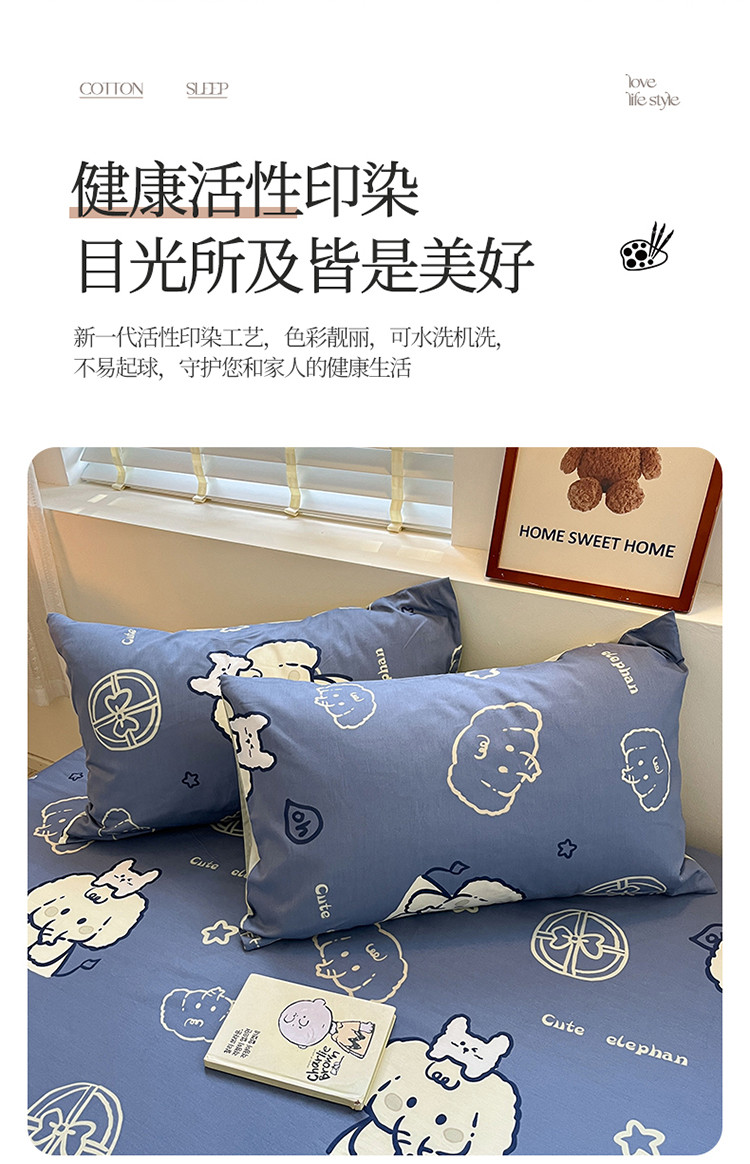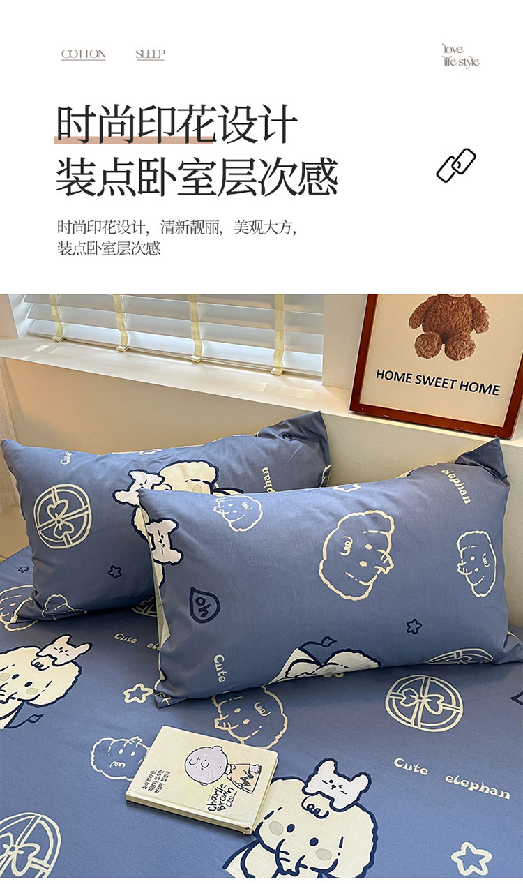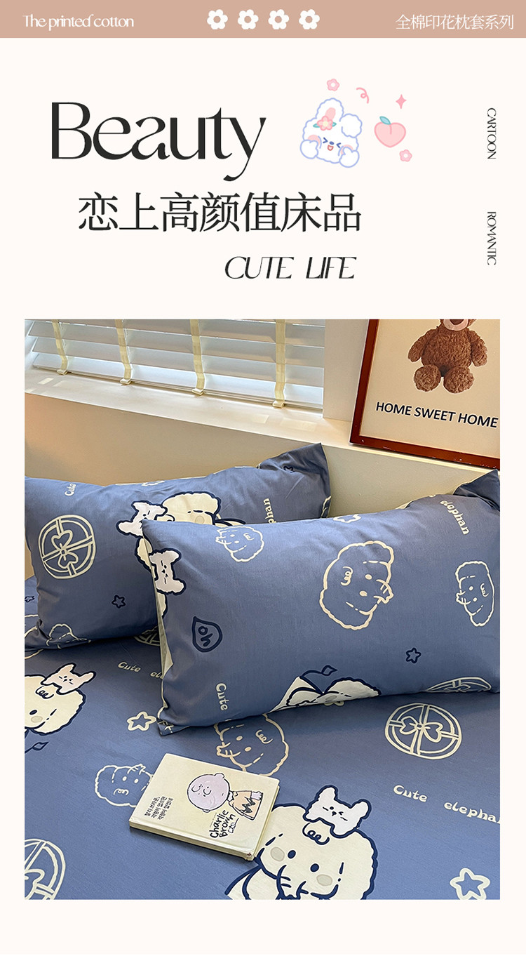 商品名称:2023新款全棉印花小清新系列-单枕套 甜心小象