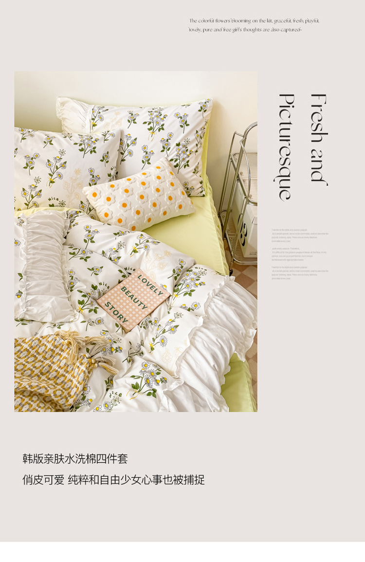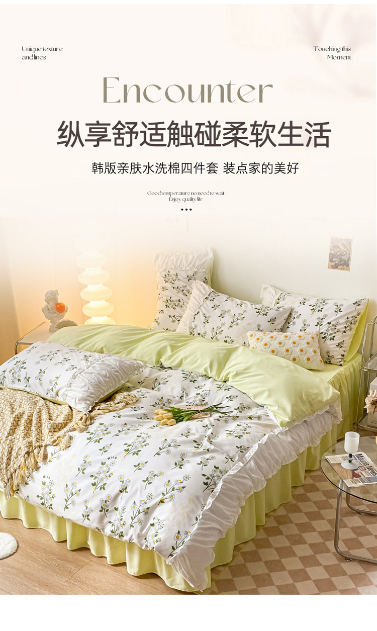 当前位置: 91家纺网 > 商品网购 > 床品套件 > 四件套 > 水洗棉四件套 > 卡斯诺 2025新款亲肤水洗棉公主风四件套-黛妃 初晴