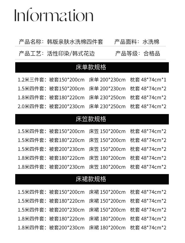 150x200床笠款四件套(被套200x230) | ¥70.00 |