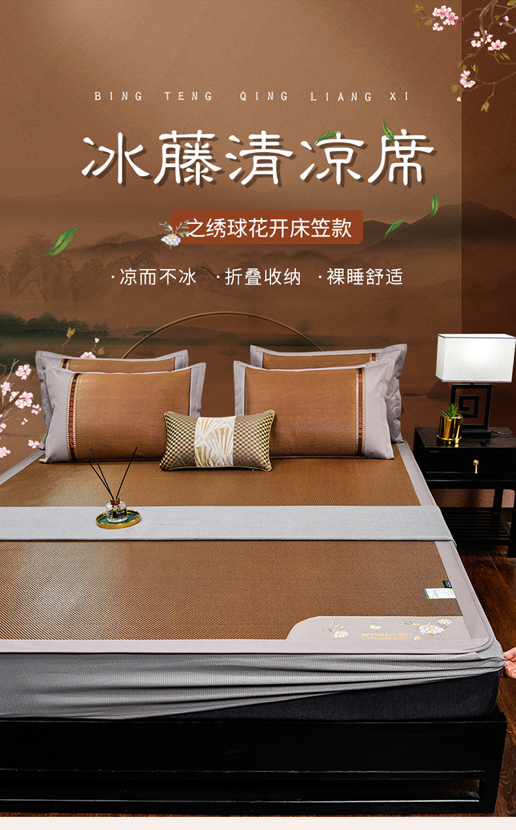当前位置: 91家纺网 > 商品网购 > 床上用品 > 凉席 > 凉席套件 > 小牛席业2023新款绣球花开冰藤双面席床笠款系列 绣球花开-冰藤床笠款(黑咖)