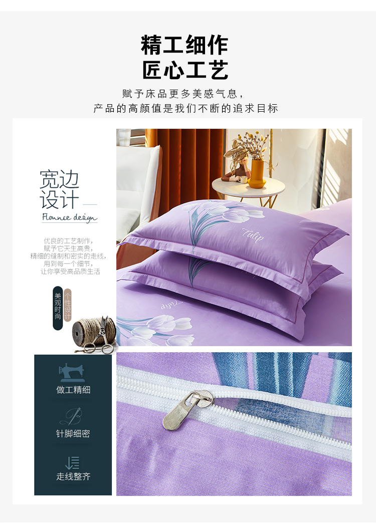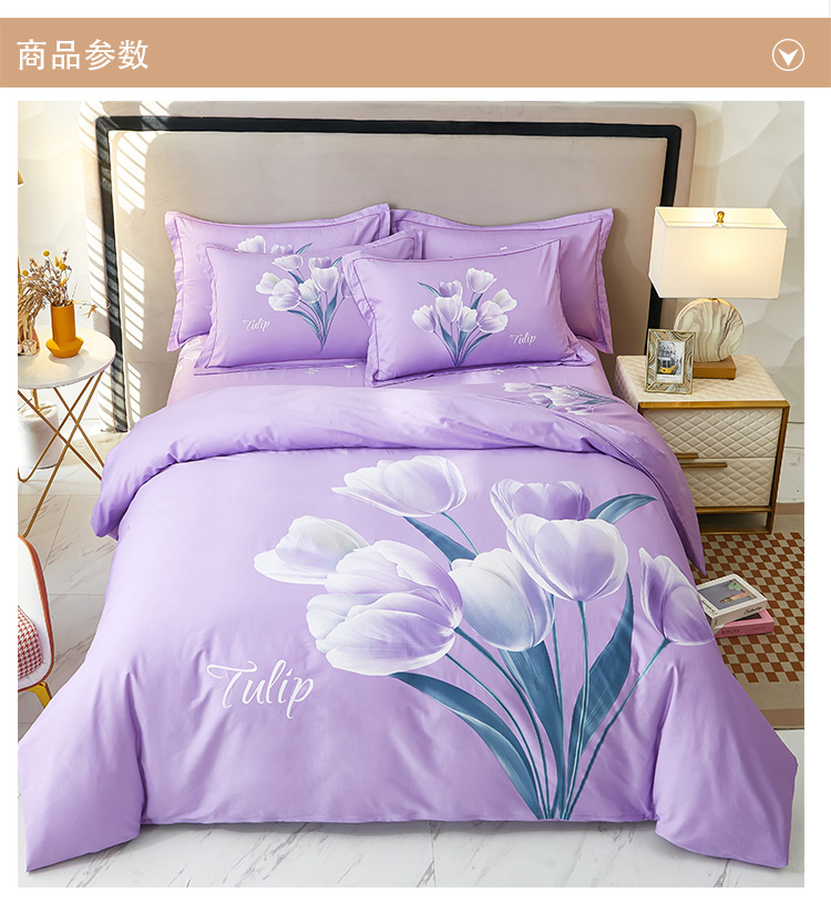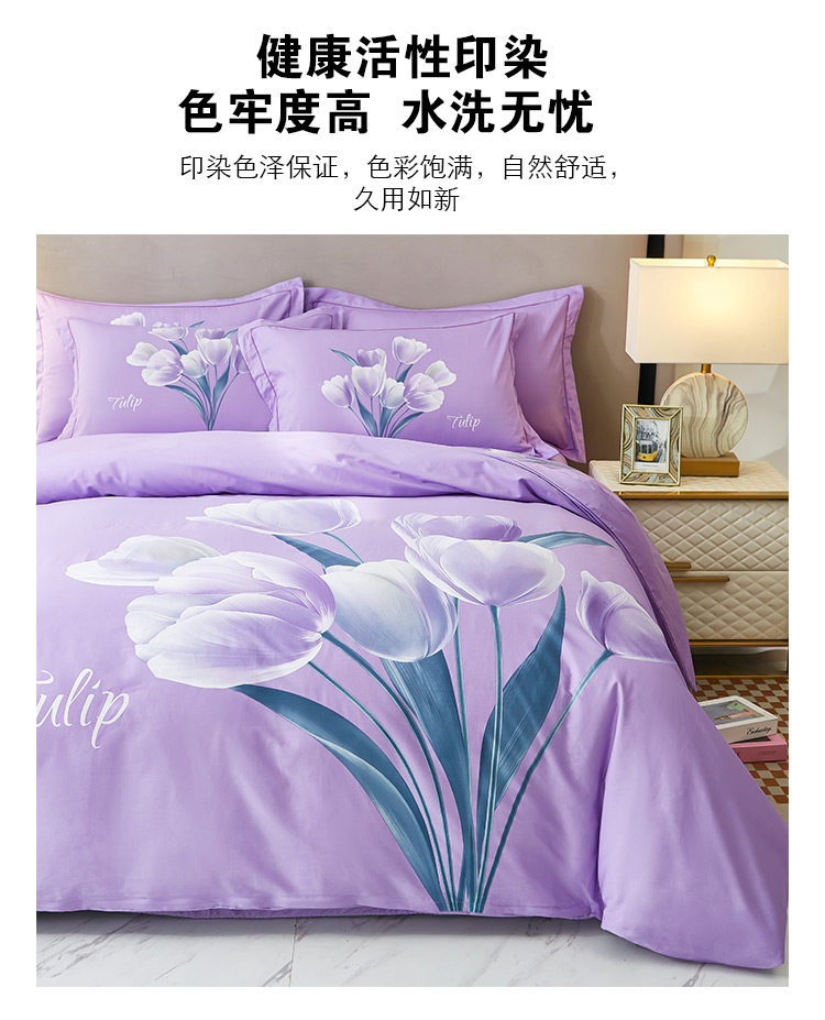 商品名称:雲归梦2023新款13372全棉活性大版印花简约居家四件套一路生花-紫