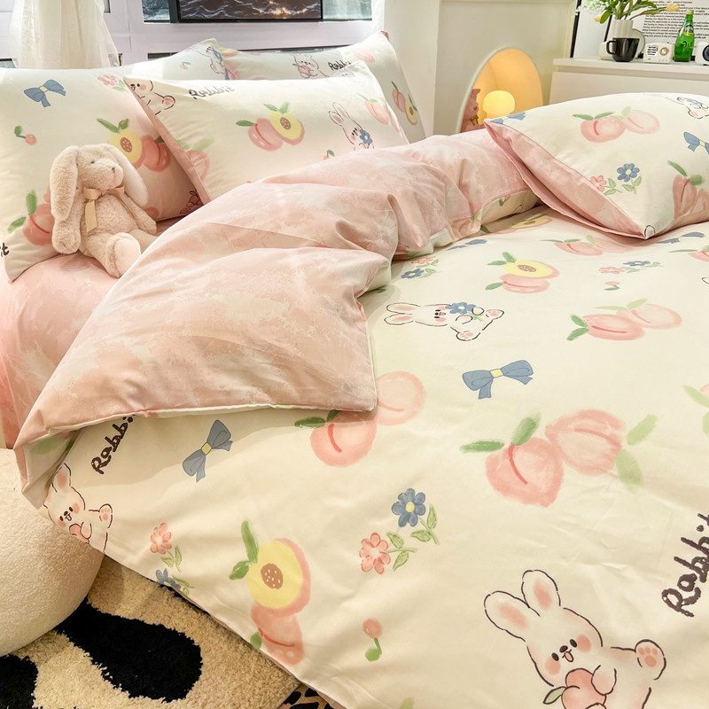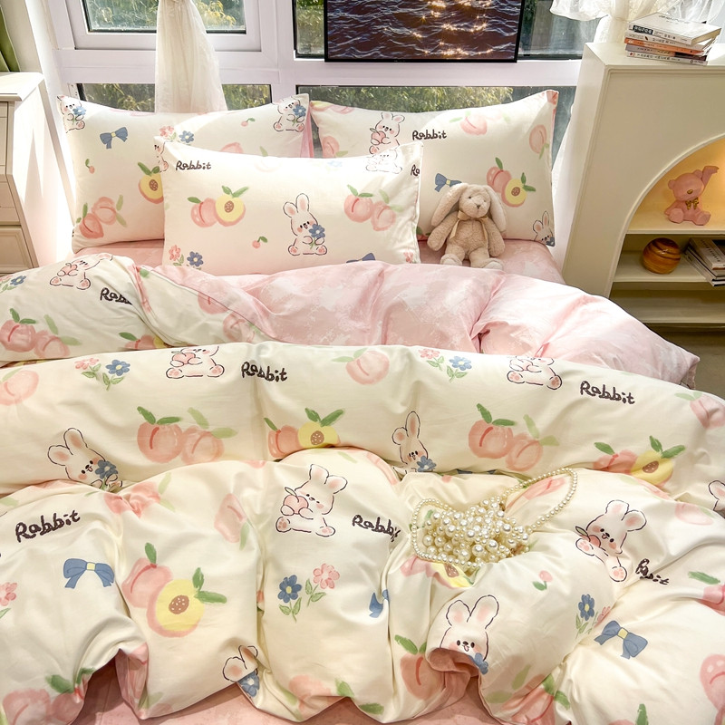 当前位置: 91家纺网 > 商品网购 > 床品套件 > 四件套 > 全棉普通四件套 > HL原创 新款全棉小清新系列13070全棉40支四件套 桃兔兔