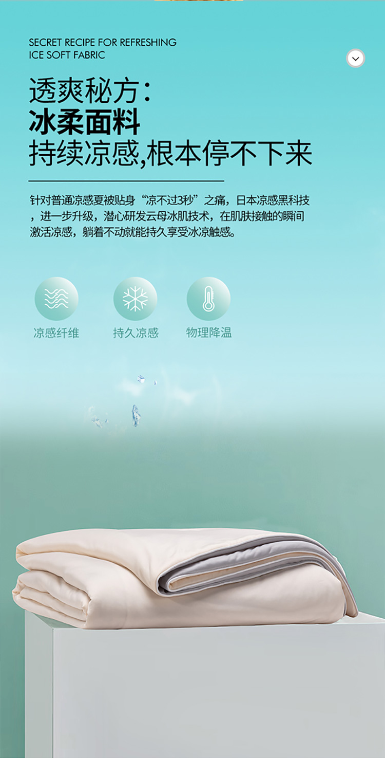 商品名称:若未家居 新款100%纯锦纶5A抗菌纤维填充凉皮冰激凌凉感夏被 心粉