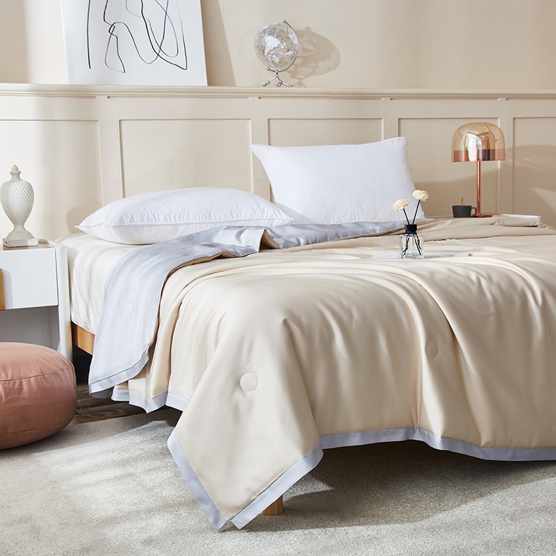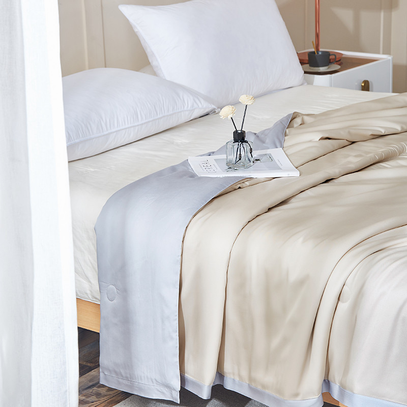 商品名称:华盛 2023新款春夏天丝夏凉被莫代尔天丝蚕丝夏被 米黄拼浅灰