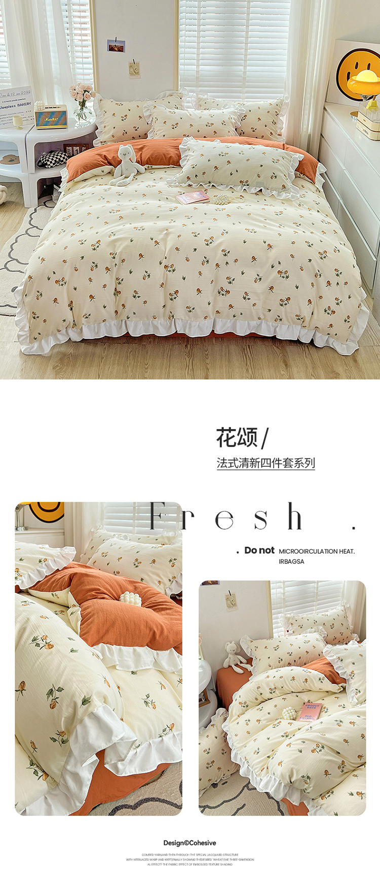 商品名称:澳梵 2023新款【怦然心动】系列-水洗棉麻双层纱四件套 花颂