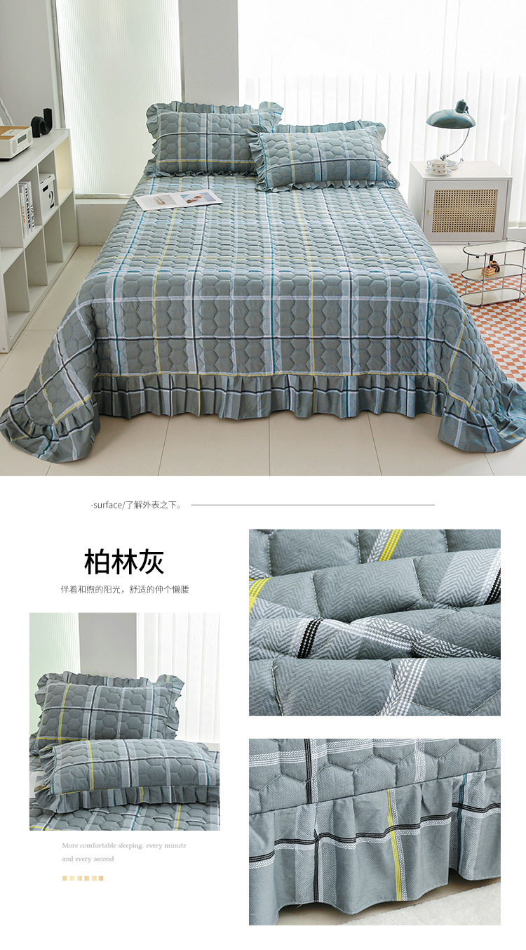 • 91家纺网 家纺一手货源 找家纺 情煊家纺 2023新款全棉夹棉印花床盖三件套(可定制尺寸) 柏林灰
