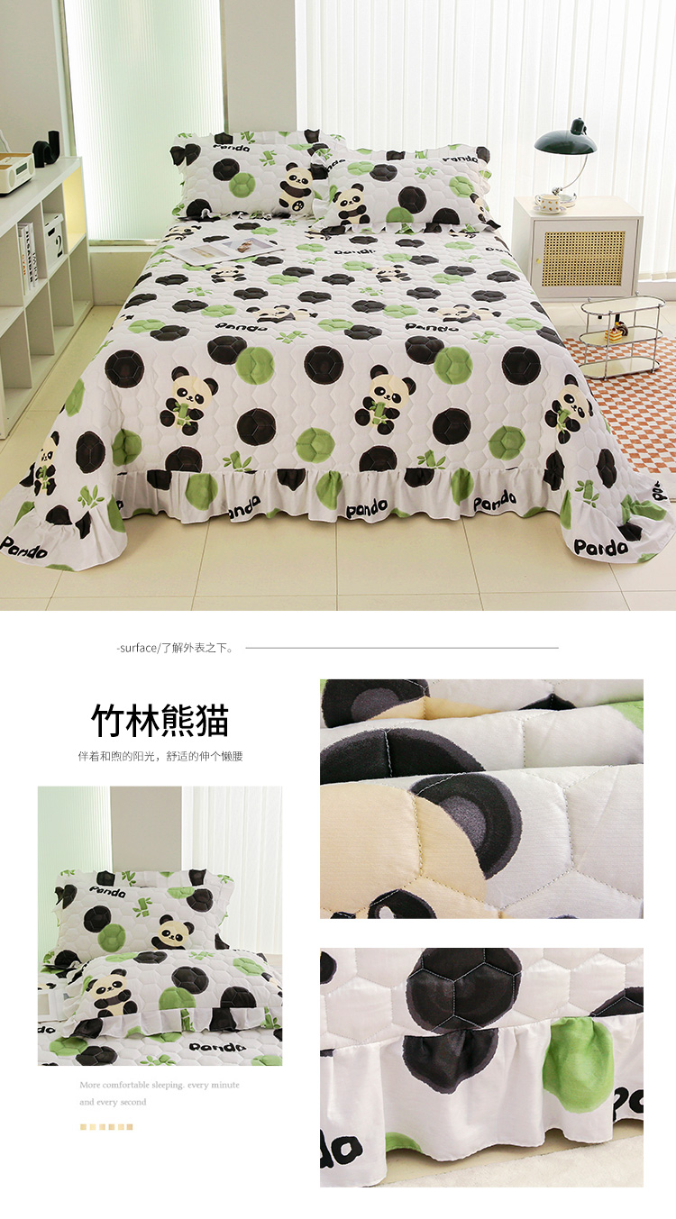 • 91家纺网 家纺一手货源 找家纺 情煊家纺 2023新款全棉夹棉印花床盖三件套(可定制尺寸) 竹林熊猫