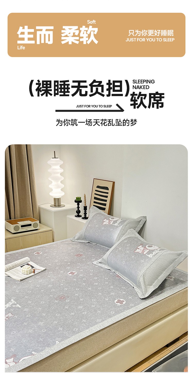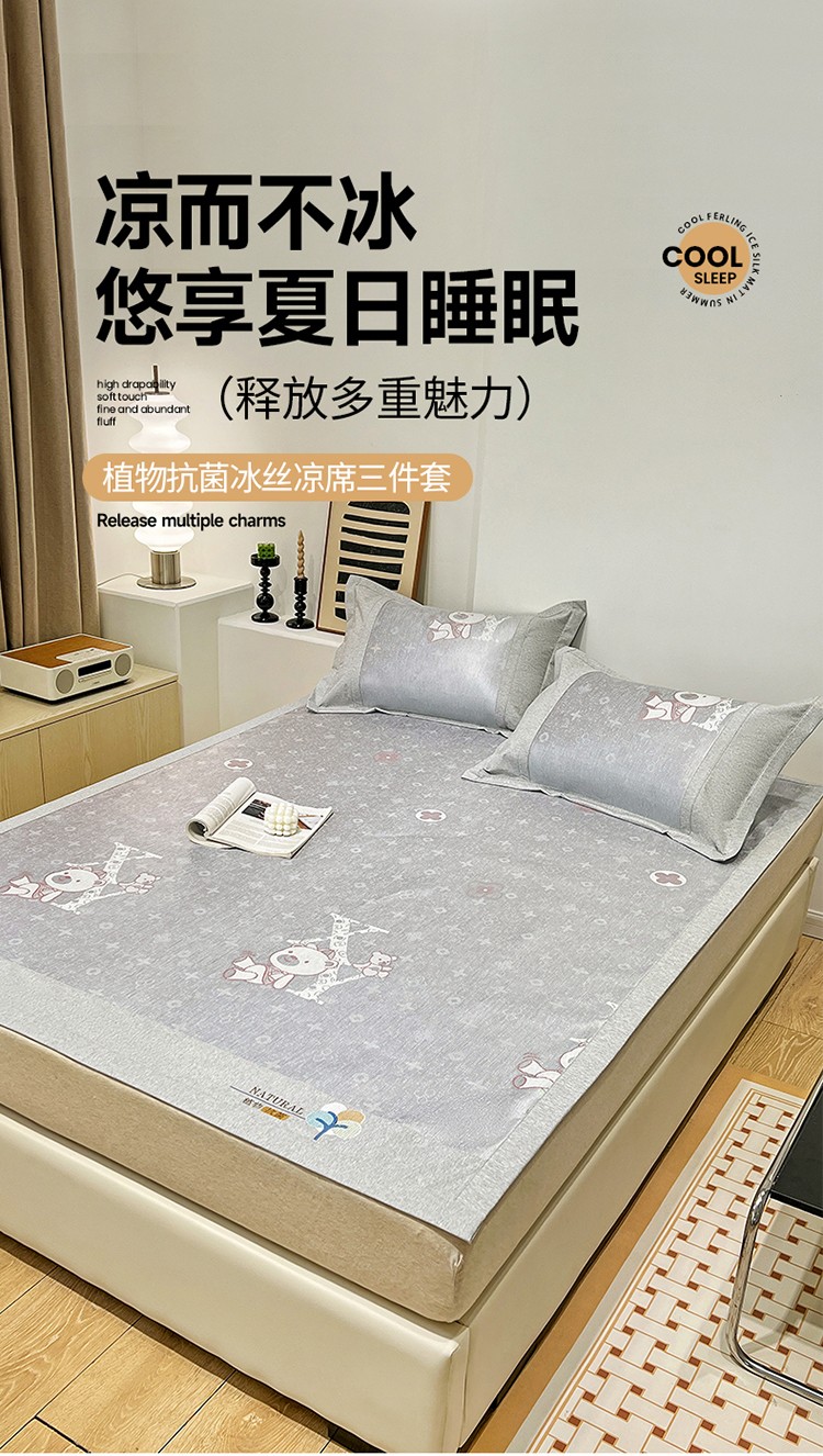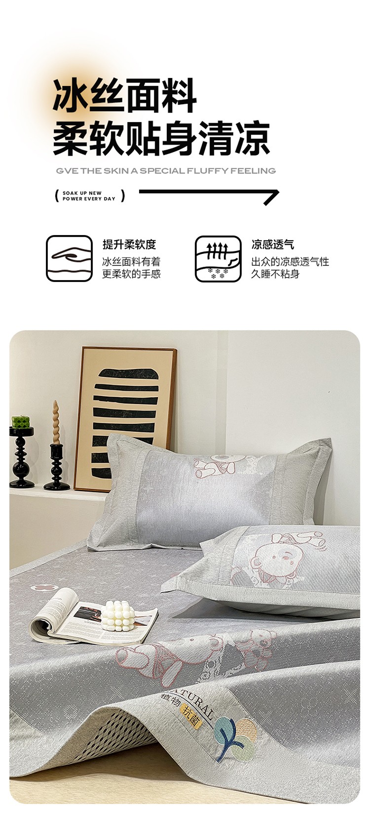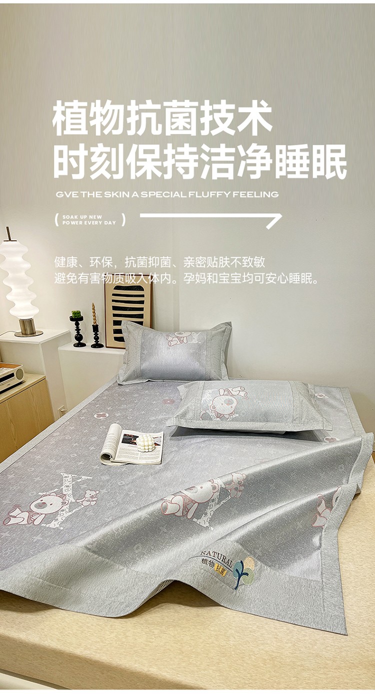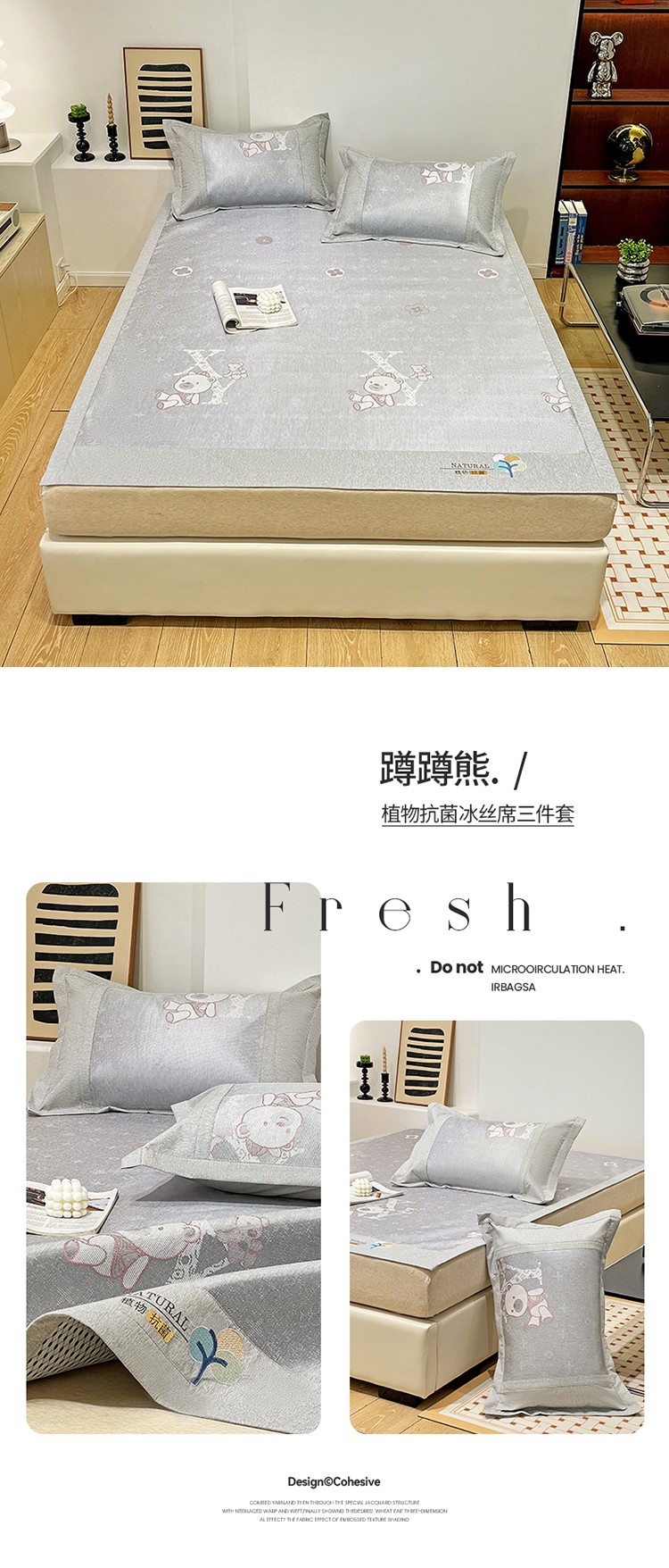 商品名称:2023澳梵植物抗菌冰丝凉席三件套软席 蹲蹲熊