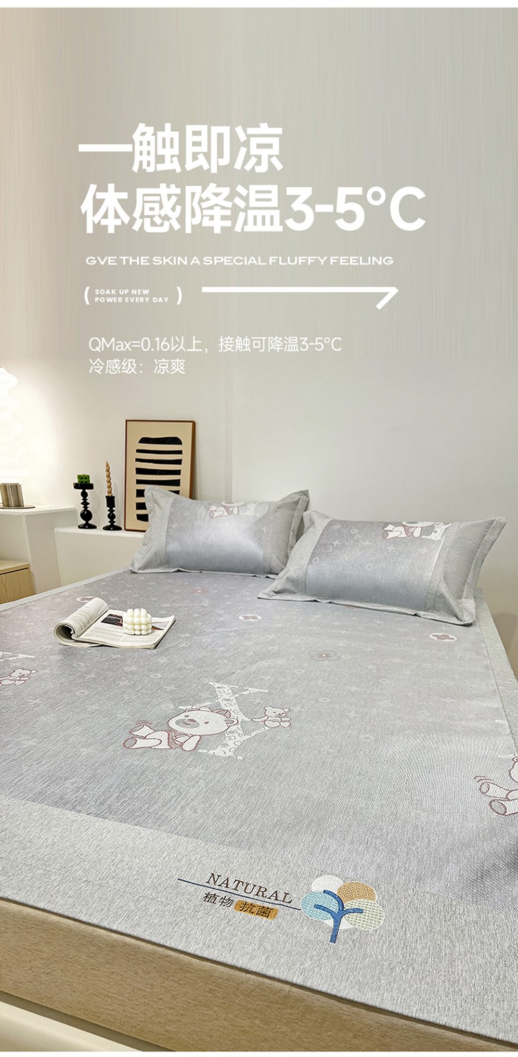 2023澳梵植物抗菌冰丝凉席三件套软席 蹲蹲熊