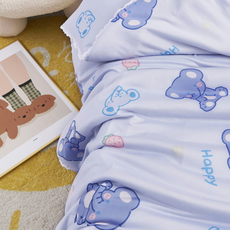 丝涟家居 2025新款A类双面针织棉卡通小清新滚绳工艺夏被木马熊,木马熊