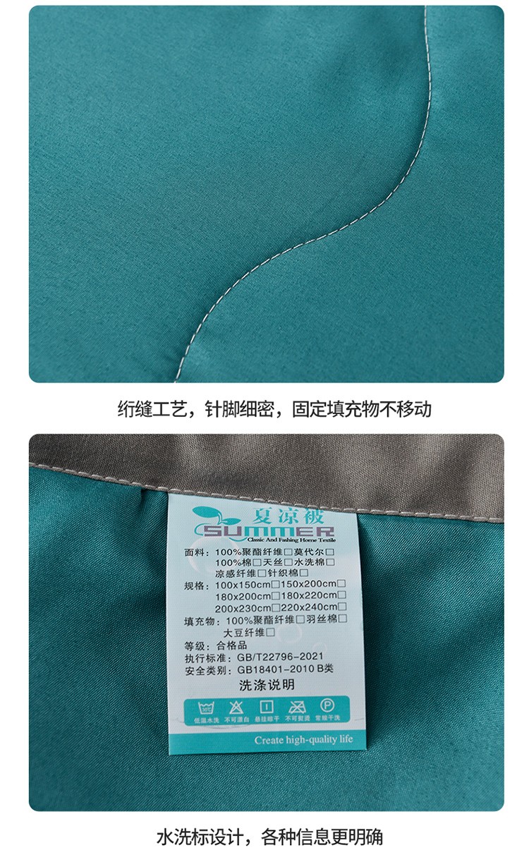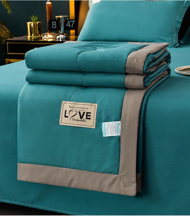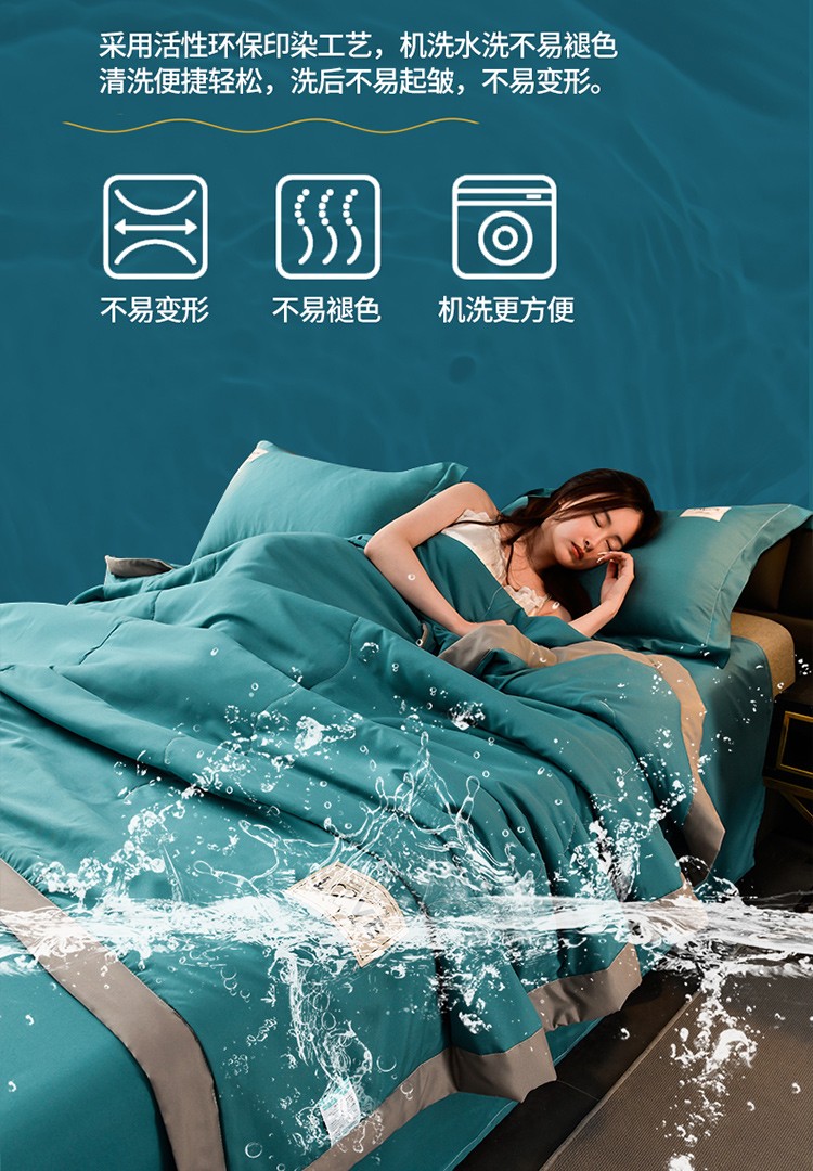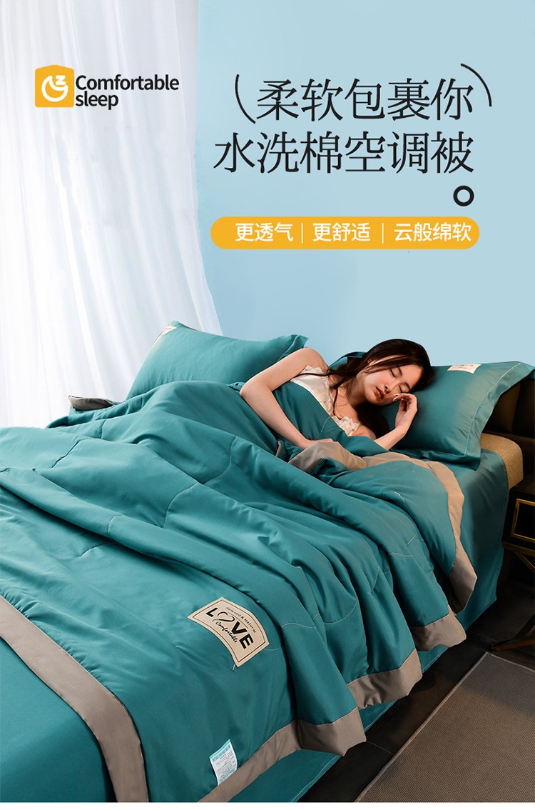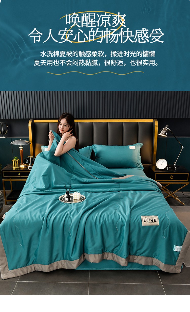 商品名称:宇豪 2023新款水洗棉夏被 LOVE-孔雀蓝