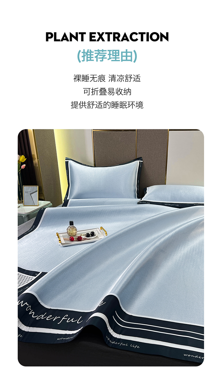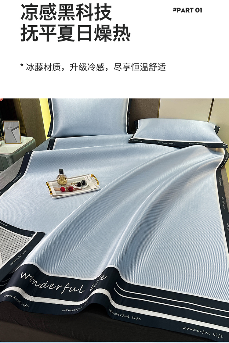 商品名称:宅部落 2023年美好生活纯色冰藤席 冰山蓝