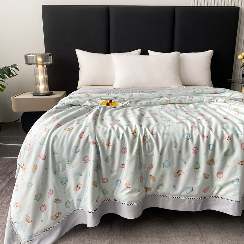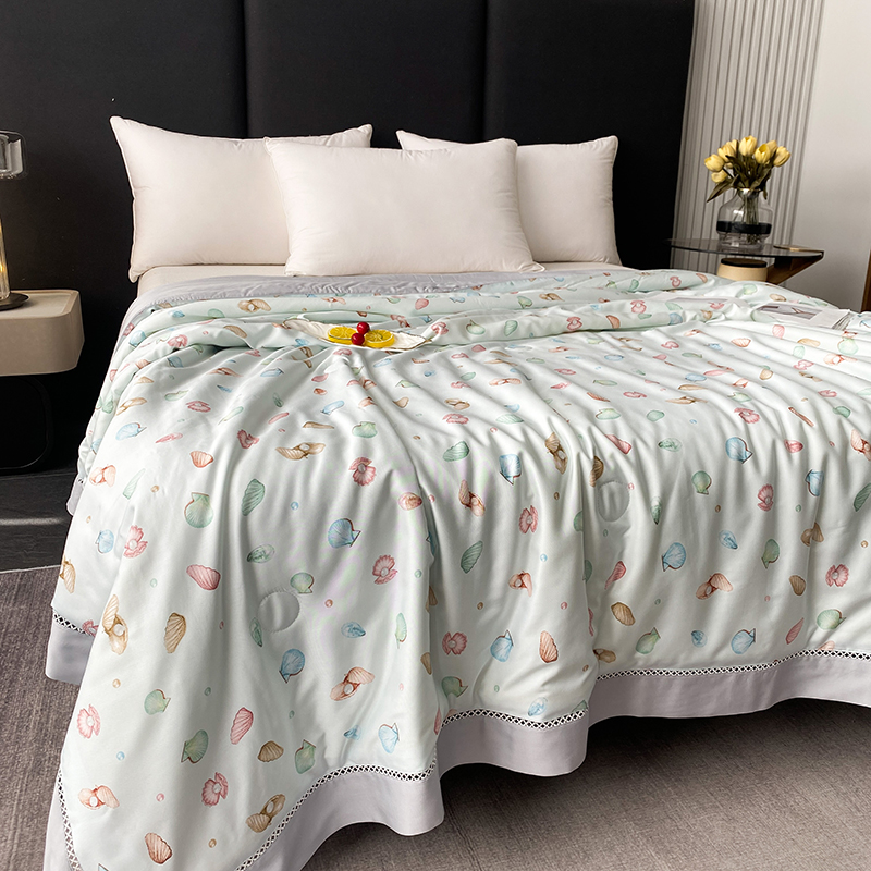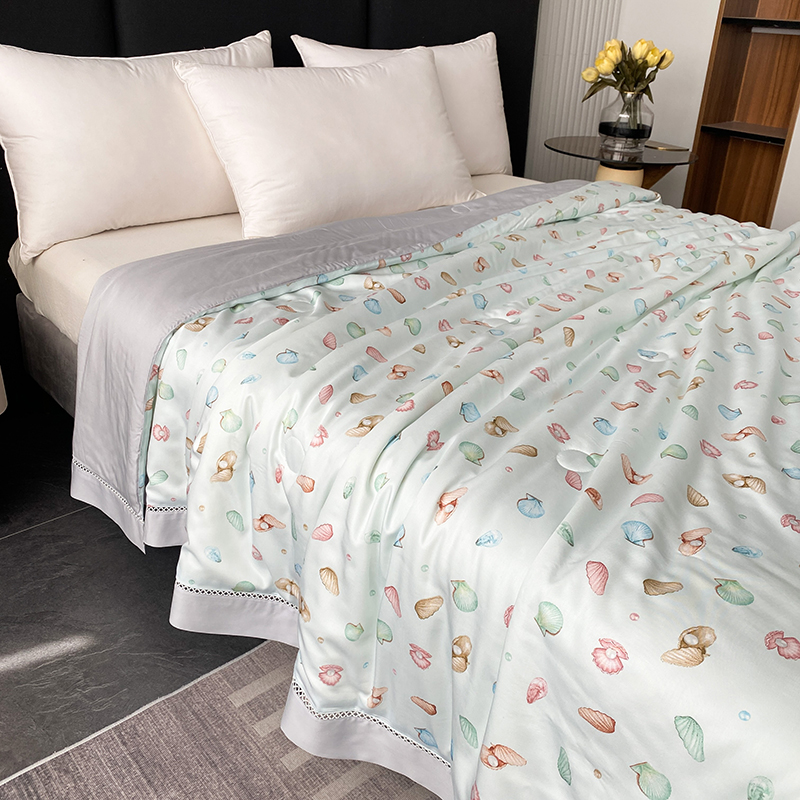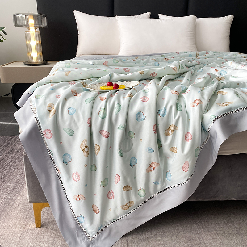 商品名称:太阳羽 2025新款铂金莱赛尔天丝印花夏凉被 镂空花边空调被 花开半夏