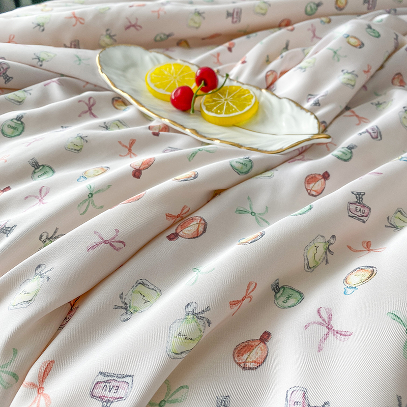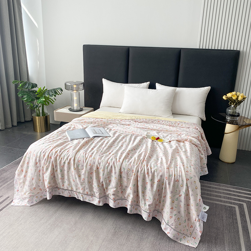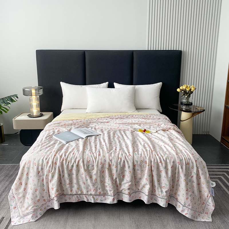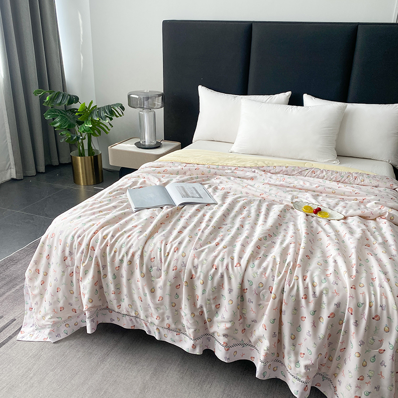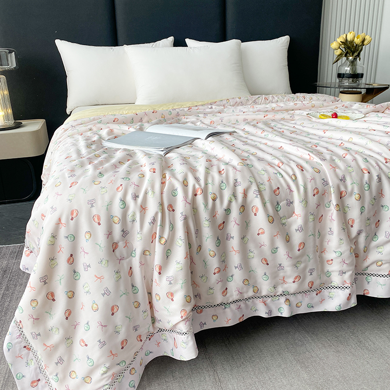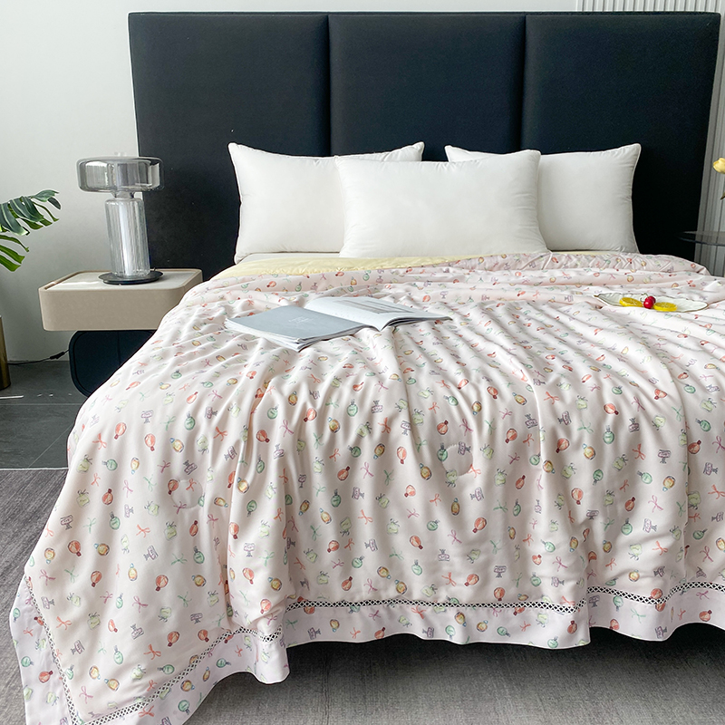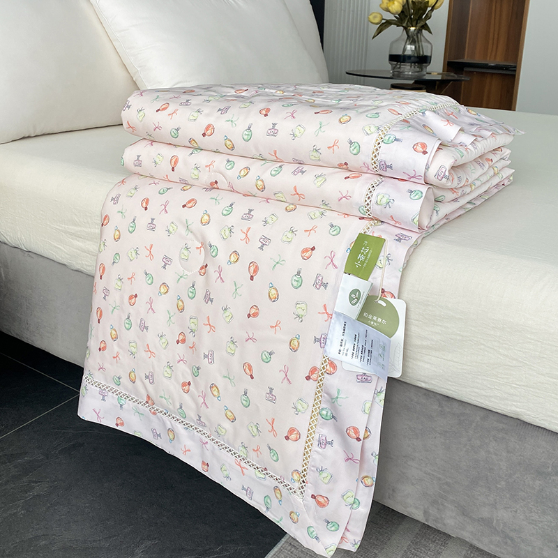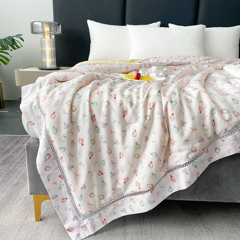 商品名称:太阳羽 2025新款铂金莱赛尔天丝印花夏凉被 镂空花边空调被 阳光花园