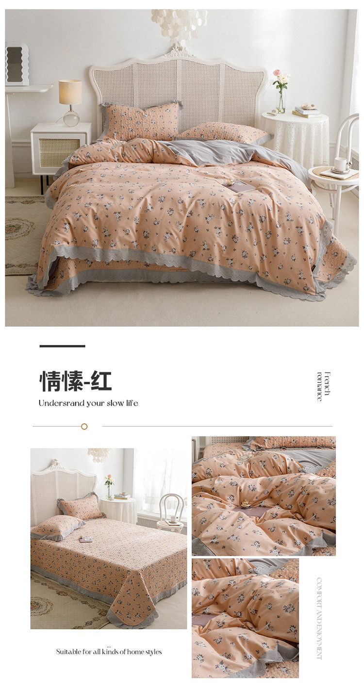 商品名称:富瑞阁 2024新款全棉水洗柔小棉床盖四件套 情愫-红