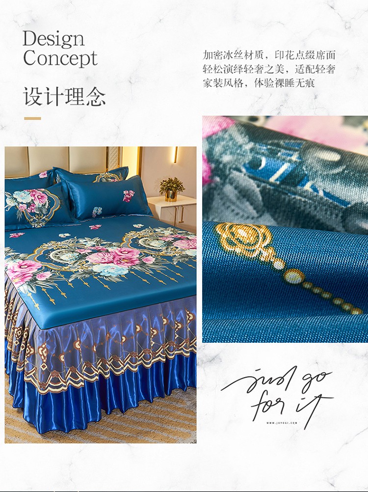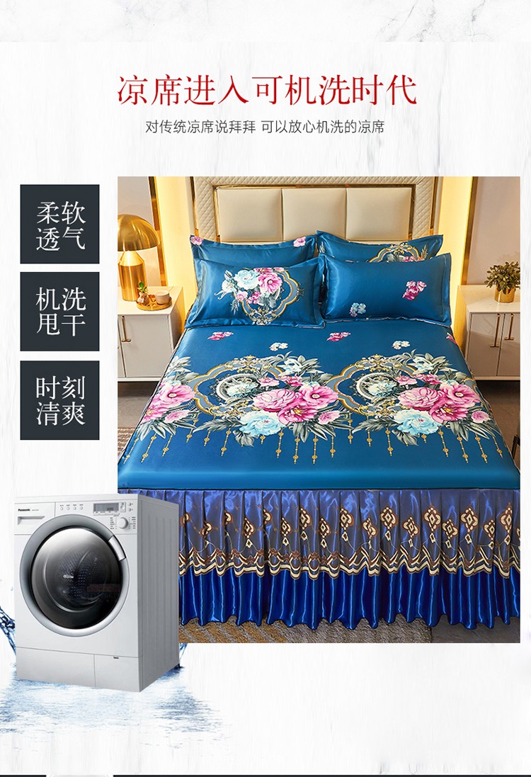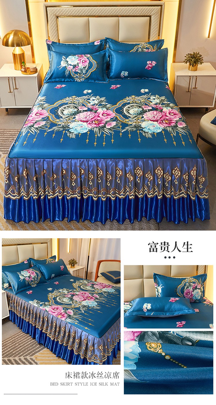 当前位置: 91家纺网 > 商品网购 > 床品套件 > 三件套 > 艾裙海 2025新款冰丝凉席三件套系列-床裙款 富贵人生