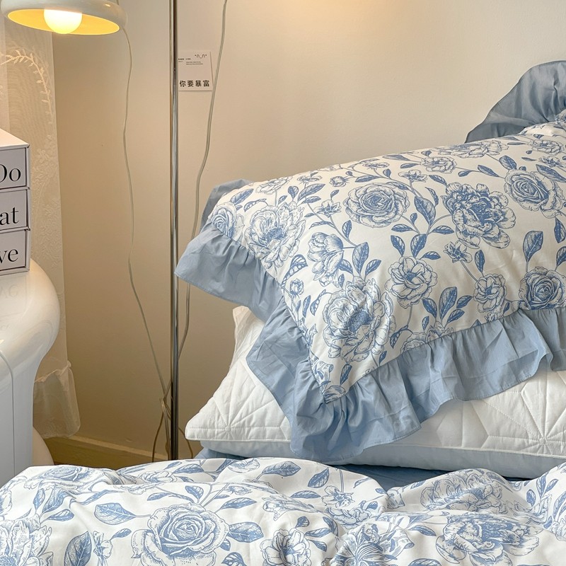 商品名称:昔可 2023新款法式复古系列花边款 手绘山茶 蓝