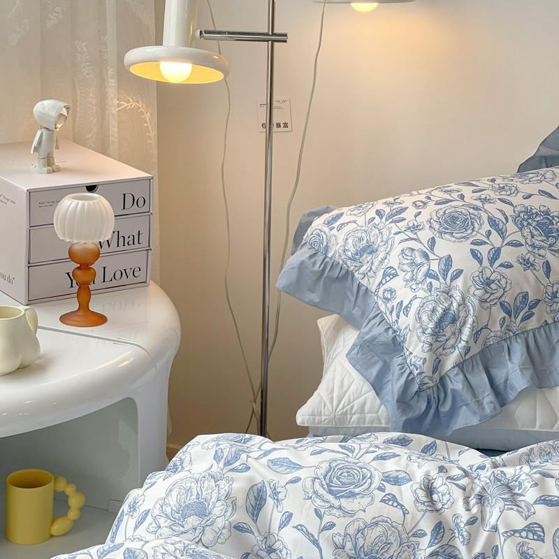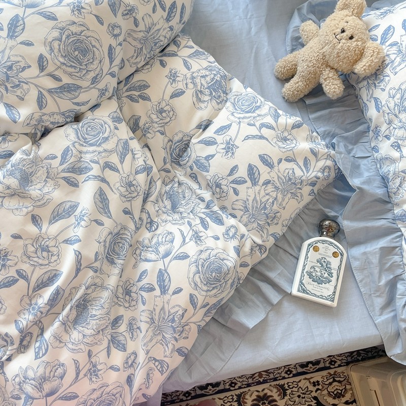 昔可 2023新款法式复古系列花边款 手绘山茶 蓝