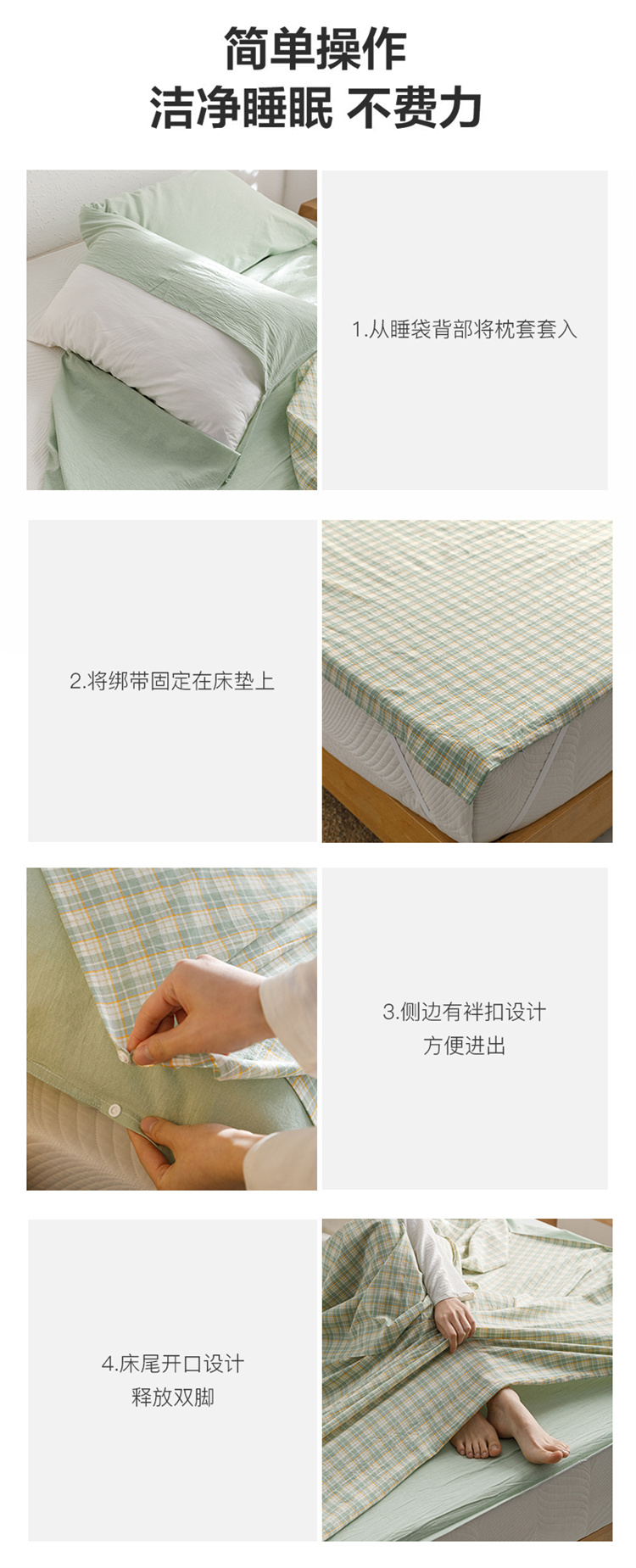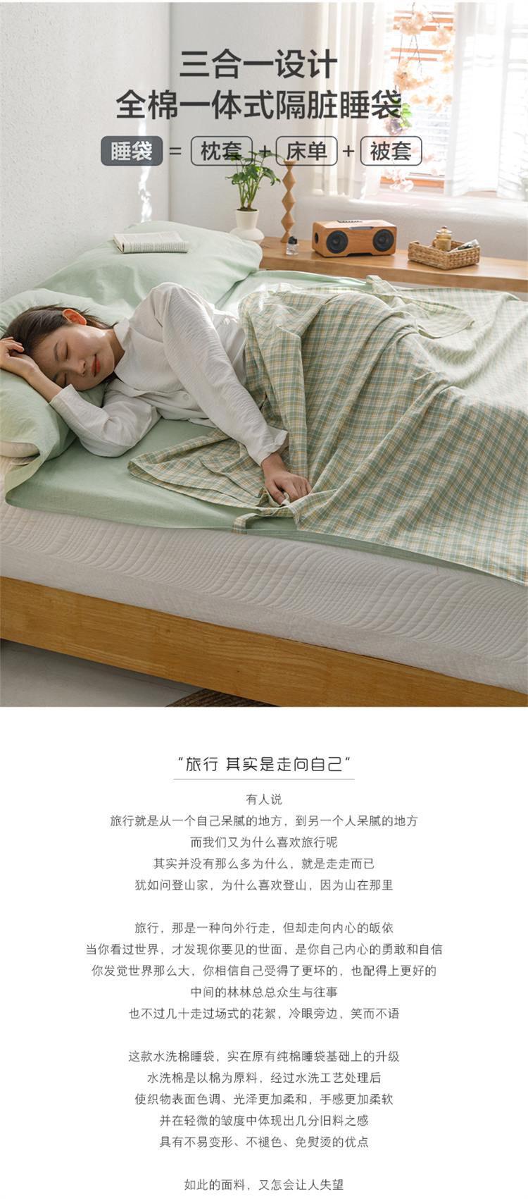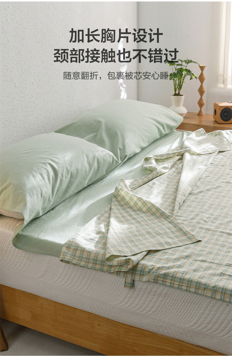 西西家居2023新款日系色织水洗棉睡袋 朵拉绿