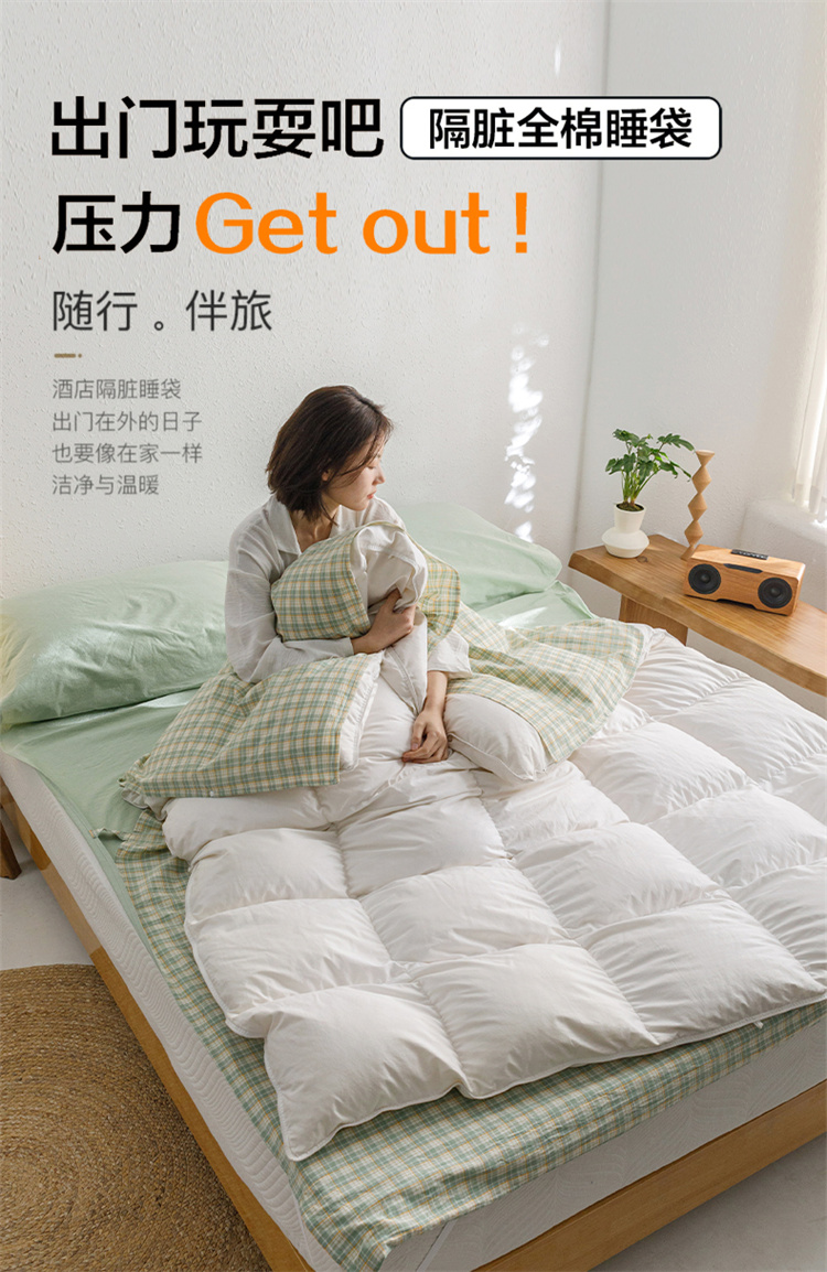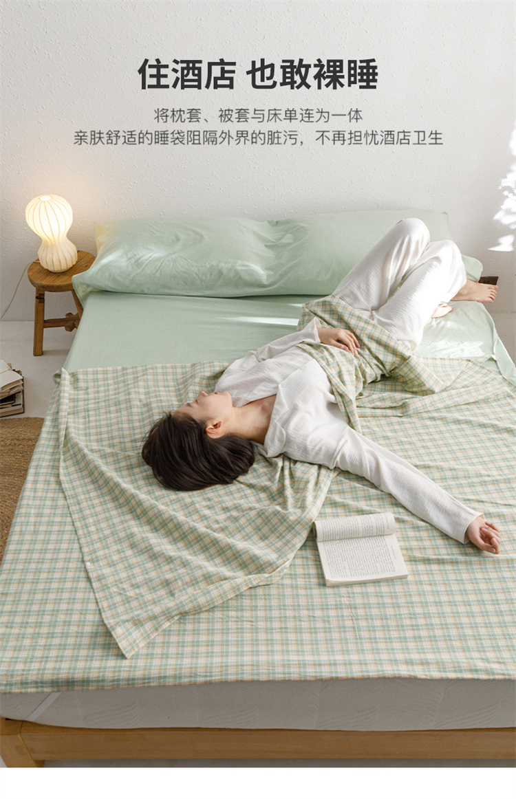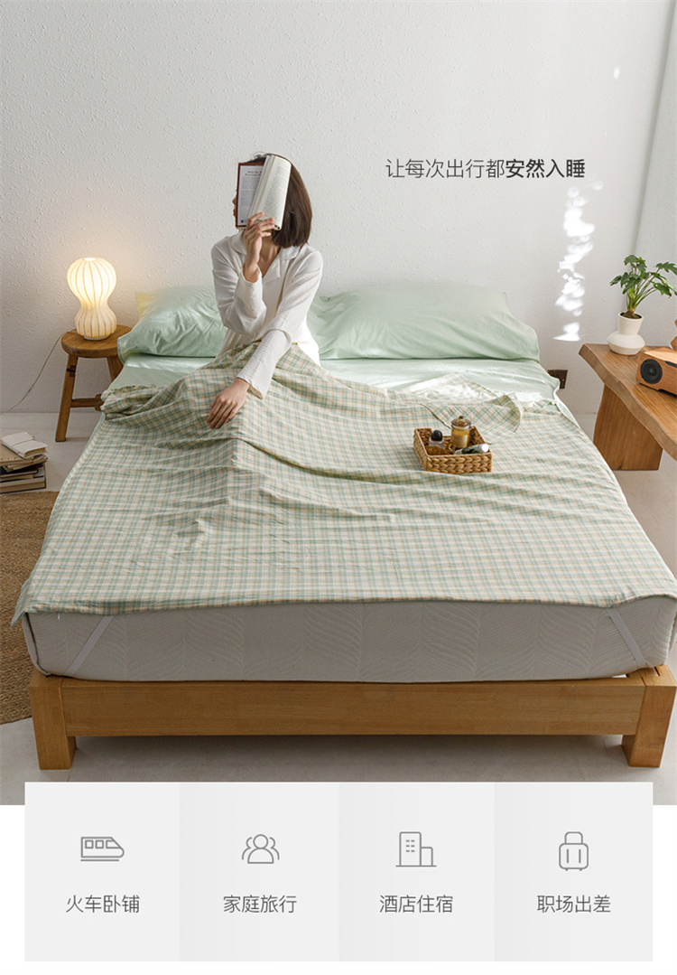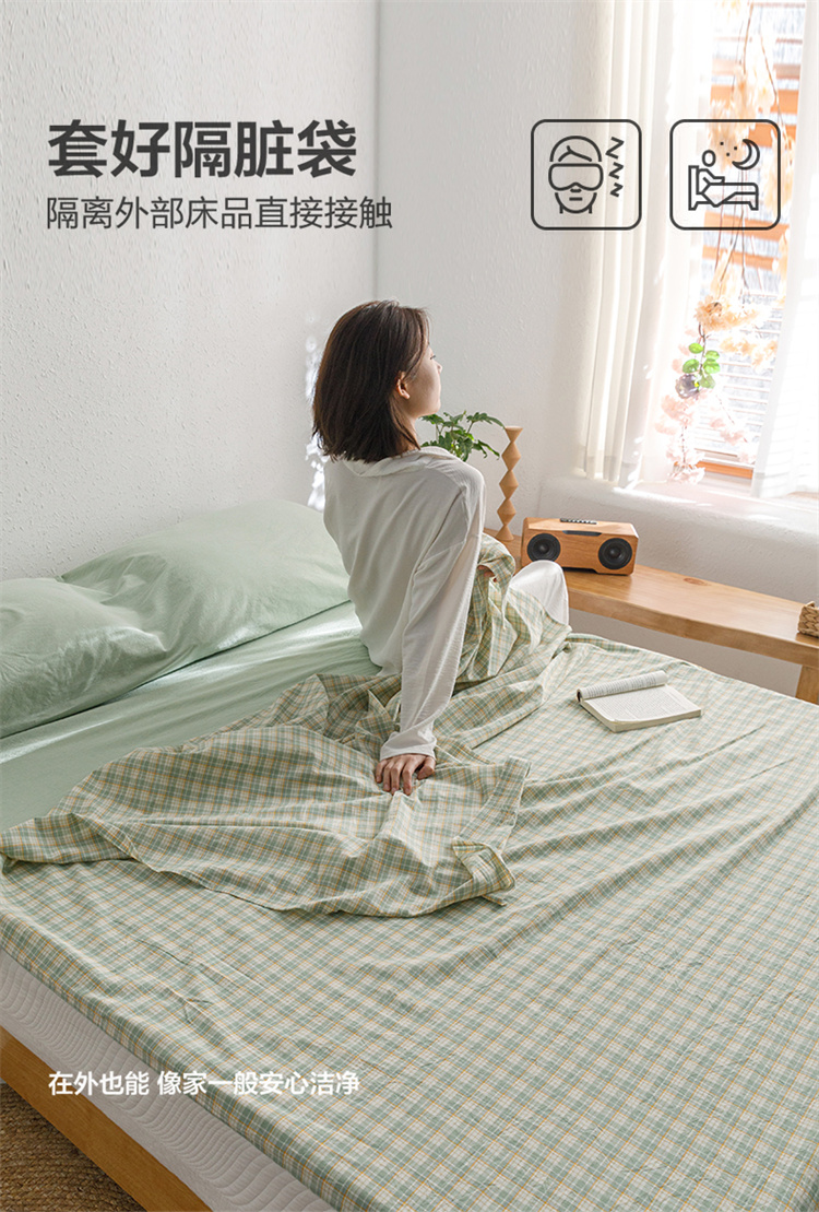 西西家居2023新款日系色织水洗棉睡袋 朵拉绿
