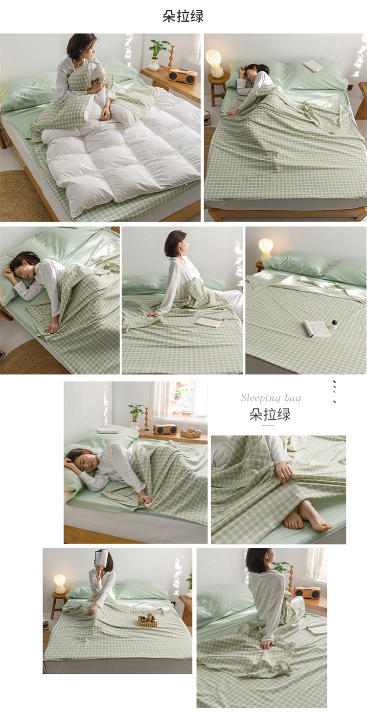 (总) 西西家居2023新款日系色织水洗棉睡袋,朵拉粉,朵拉蓝,朵拉绿,粉黄格,粉蓝格,粉绿格,桔蓝格,蓝黄格