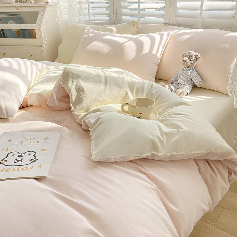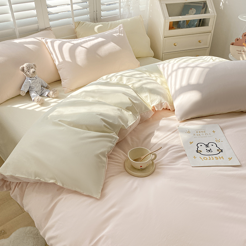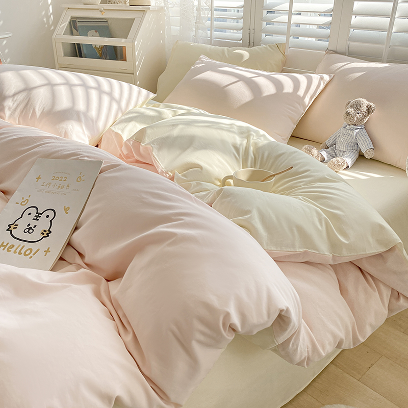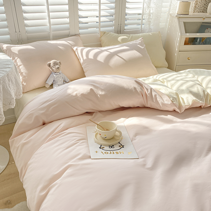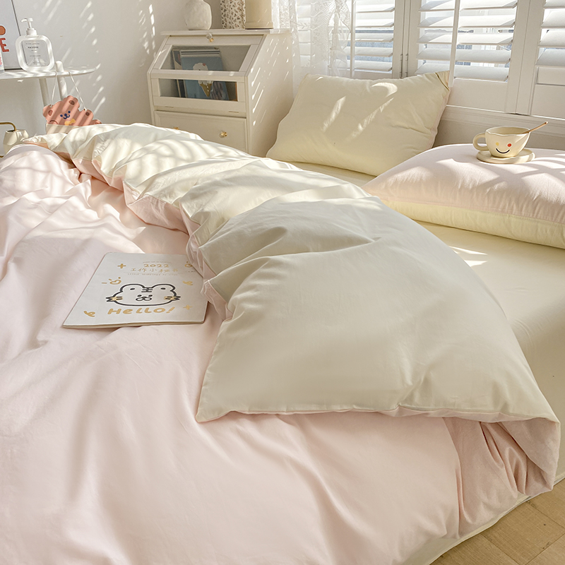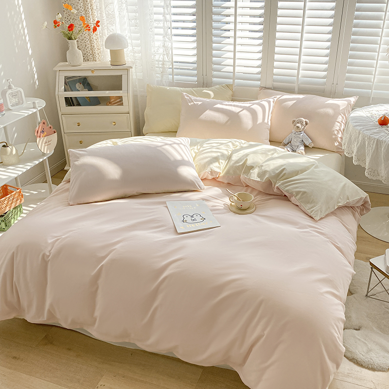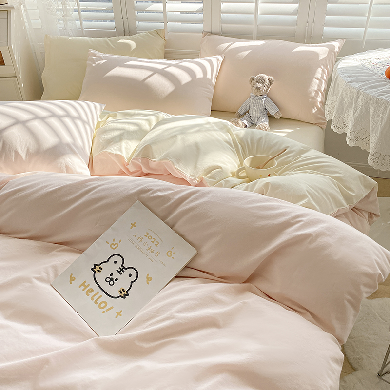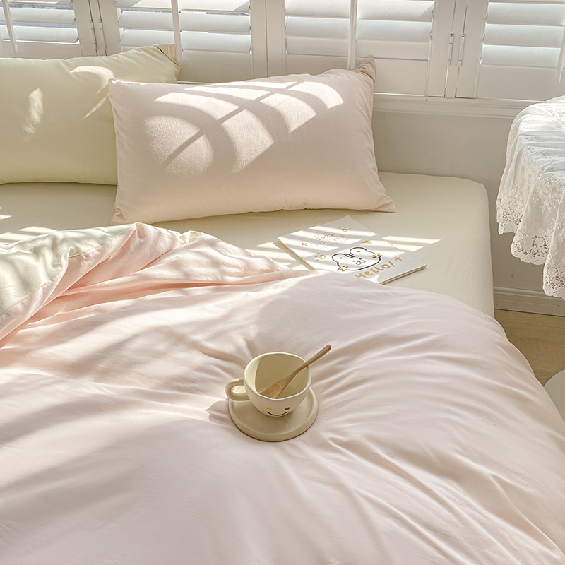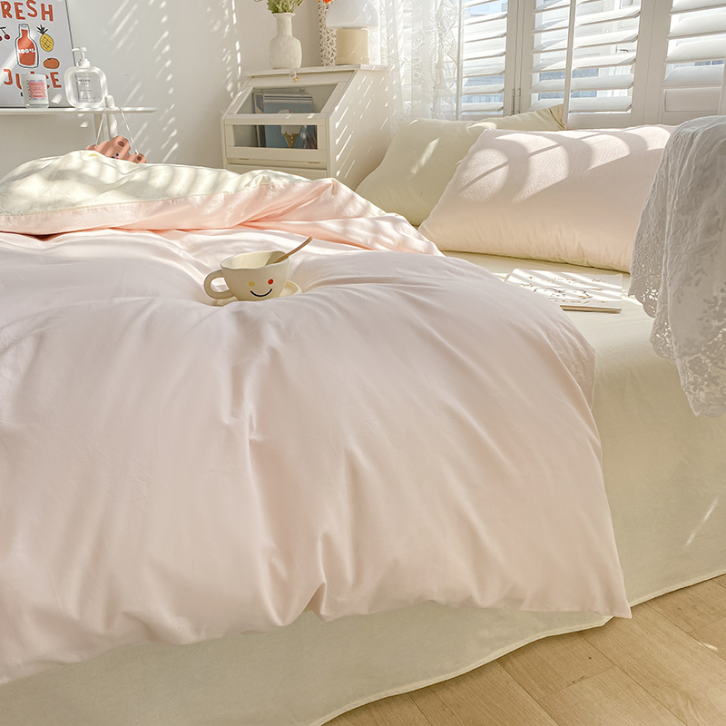当前位置: 91家纺网 > 商品网购 > 床品套件 > 四件套 > 水洗棉四件套 > 盼季家纺 2023新款纯色双拼简约水洗棉四件套 粉芝士双拼
