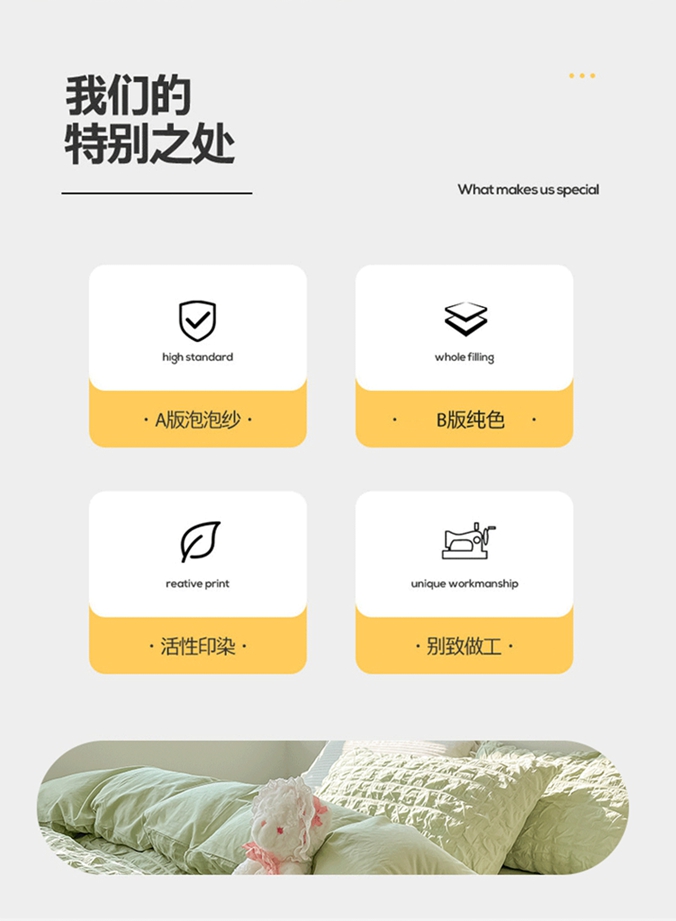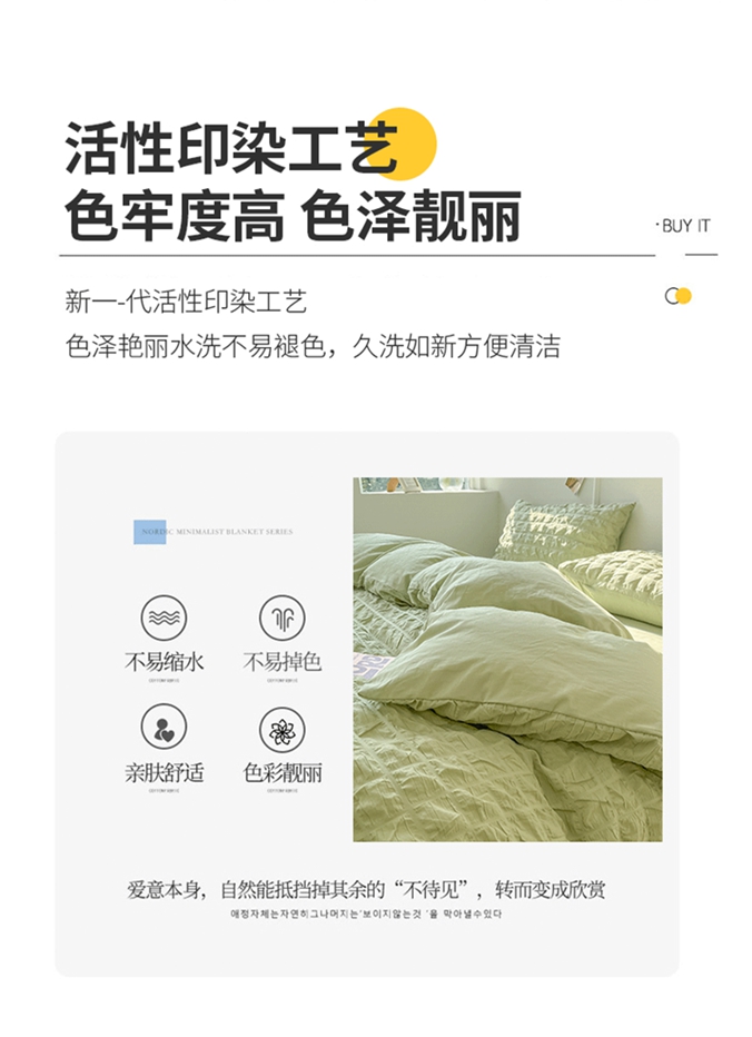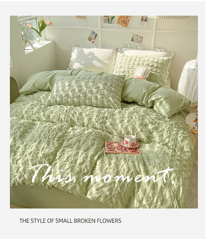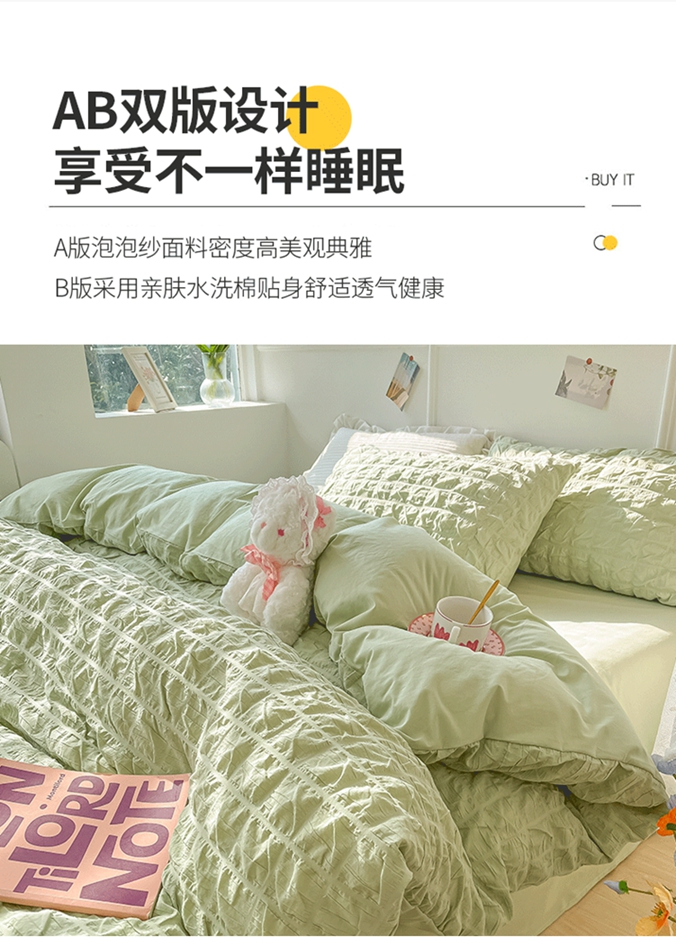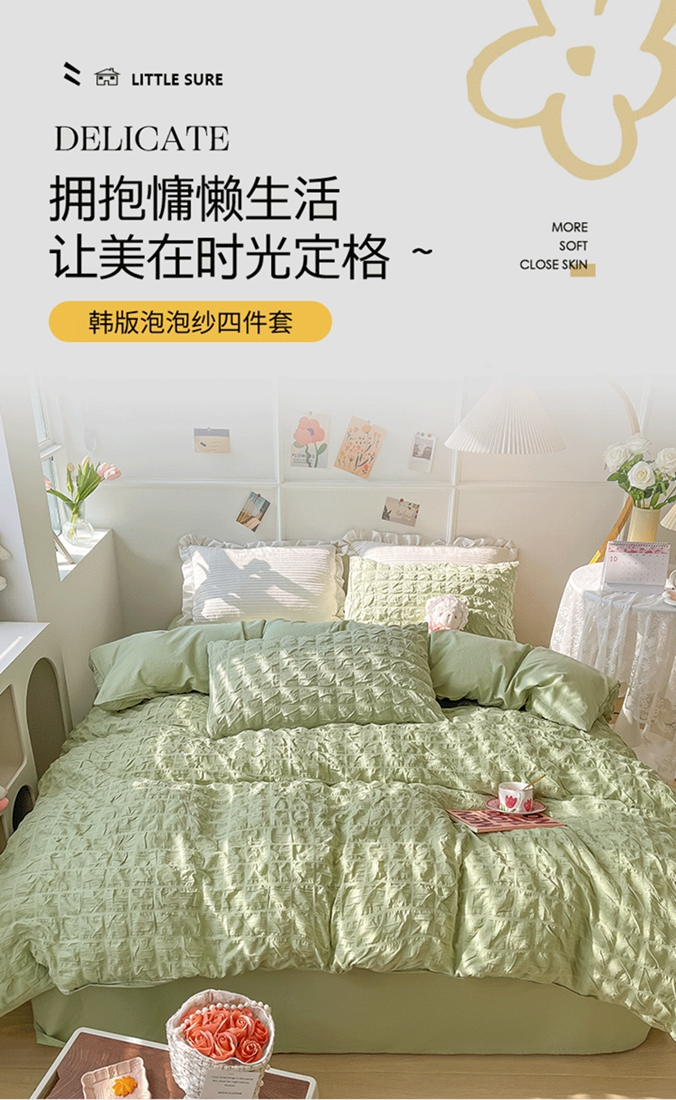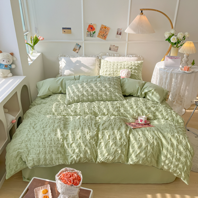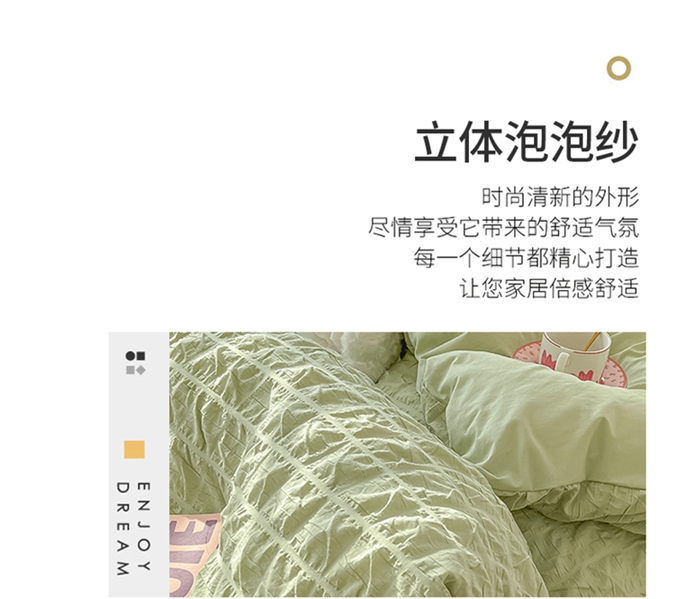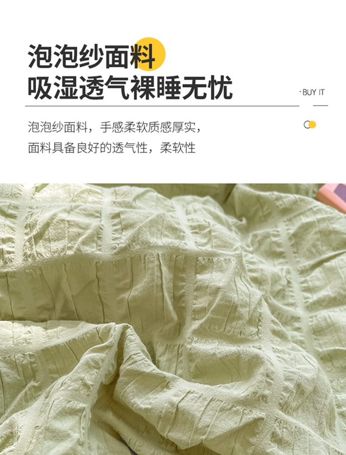 当前位置: 91家纺网 > 商品网购 > 床品套件 > 四件套 > 水洗棉四件套 > 盼季家纺2023款春夏简约小清新泡泡纱水洗棉床上四件套 格子泡泡-青绿