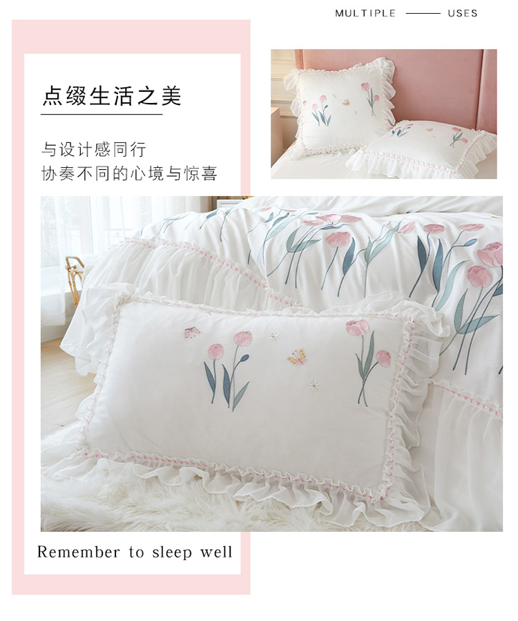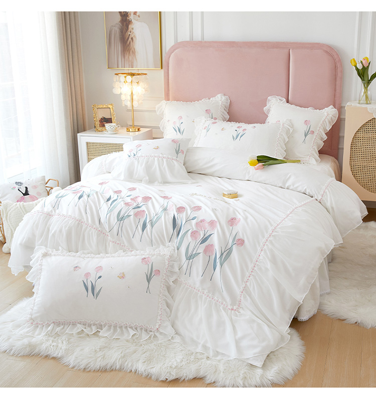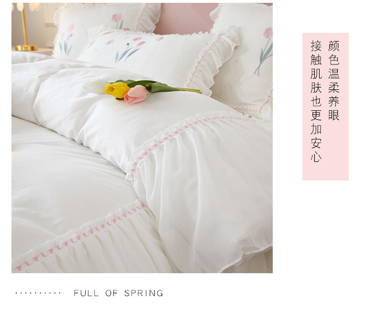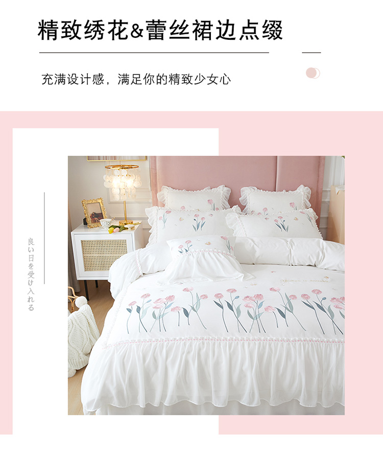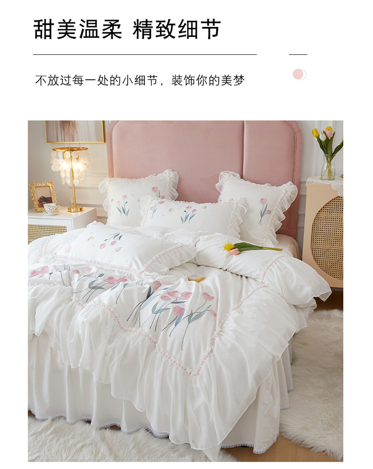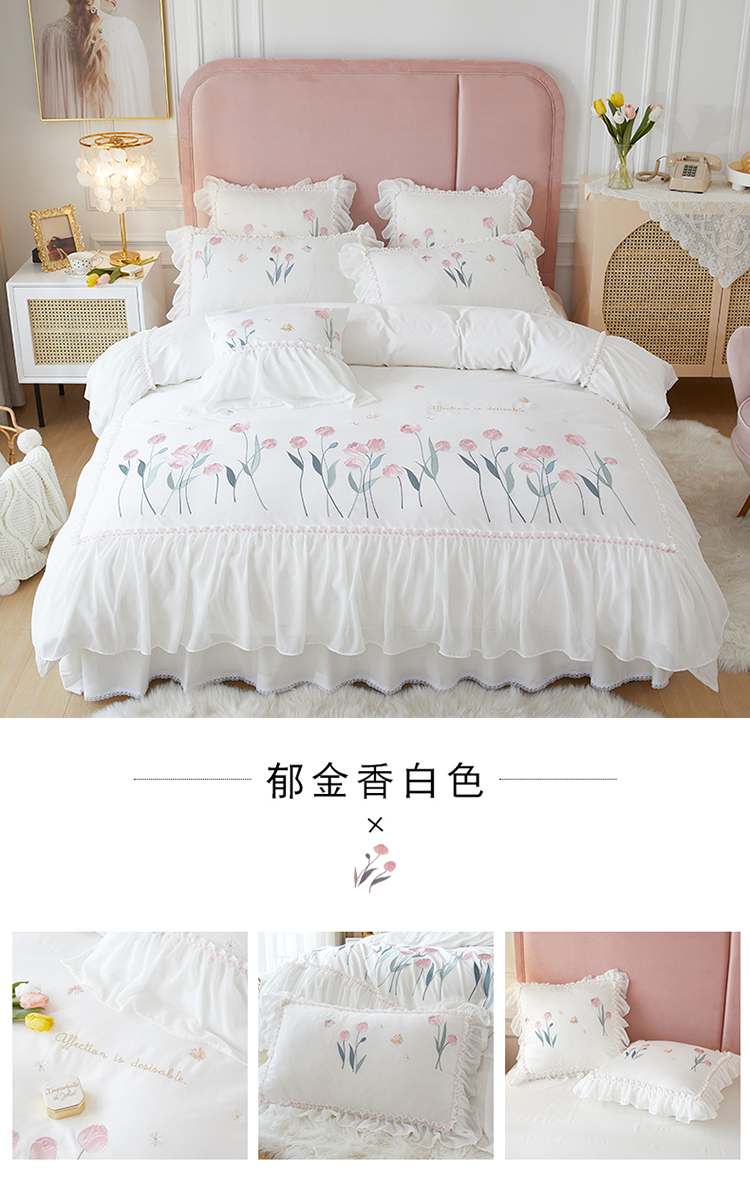 当前位置: 91家纺网 > 商品网购 > 床品套件 > 四件套 > 全棉普通四件套 > 亲亲公主2025新款全棉韩版绣花韩版公主风蕾丝四件套-郁金香白色