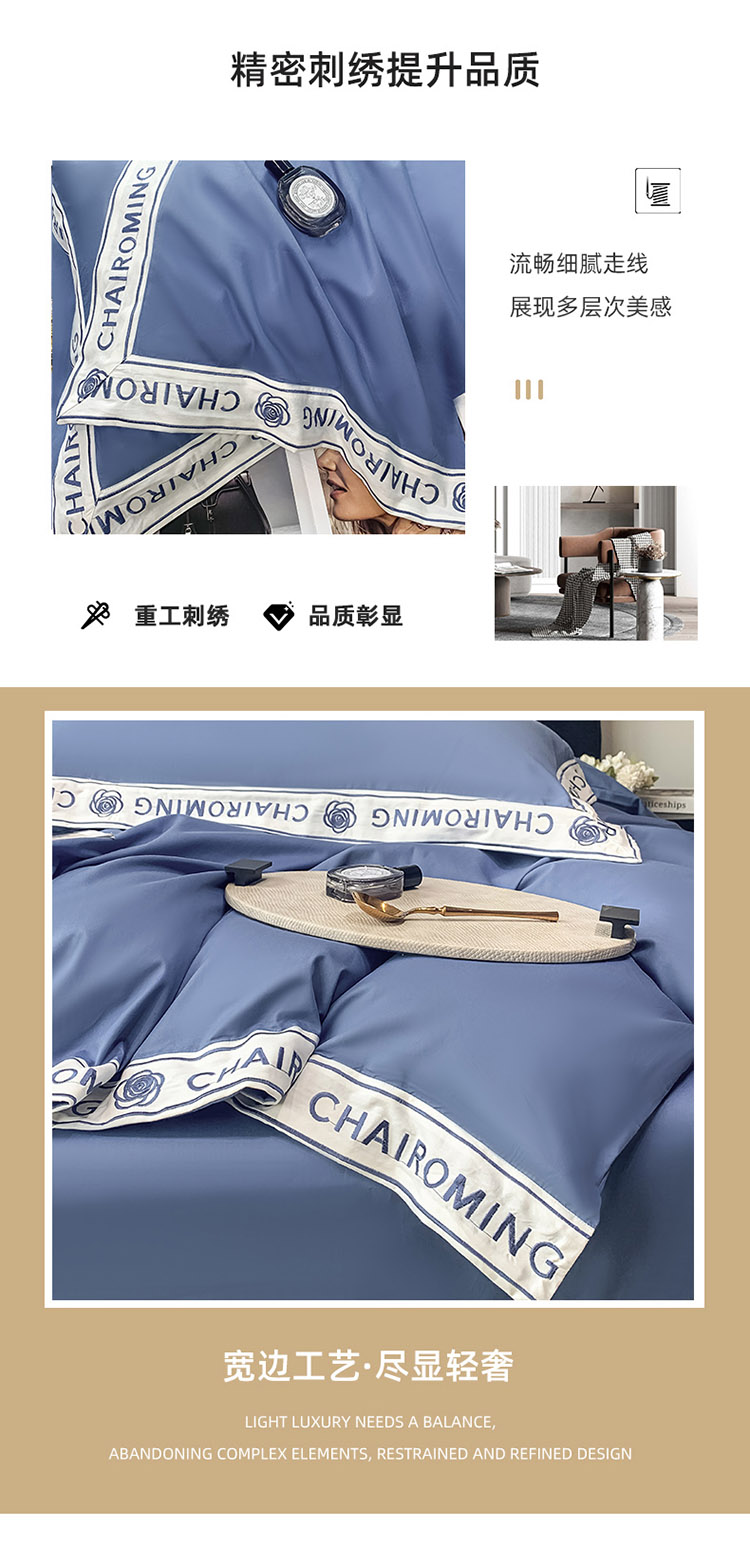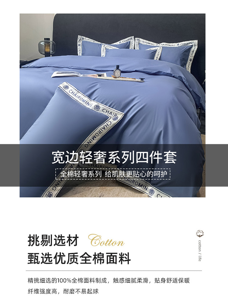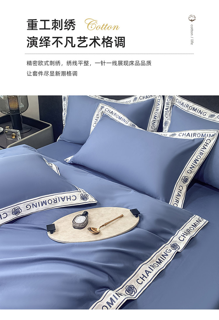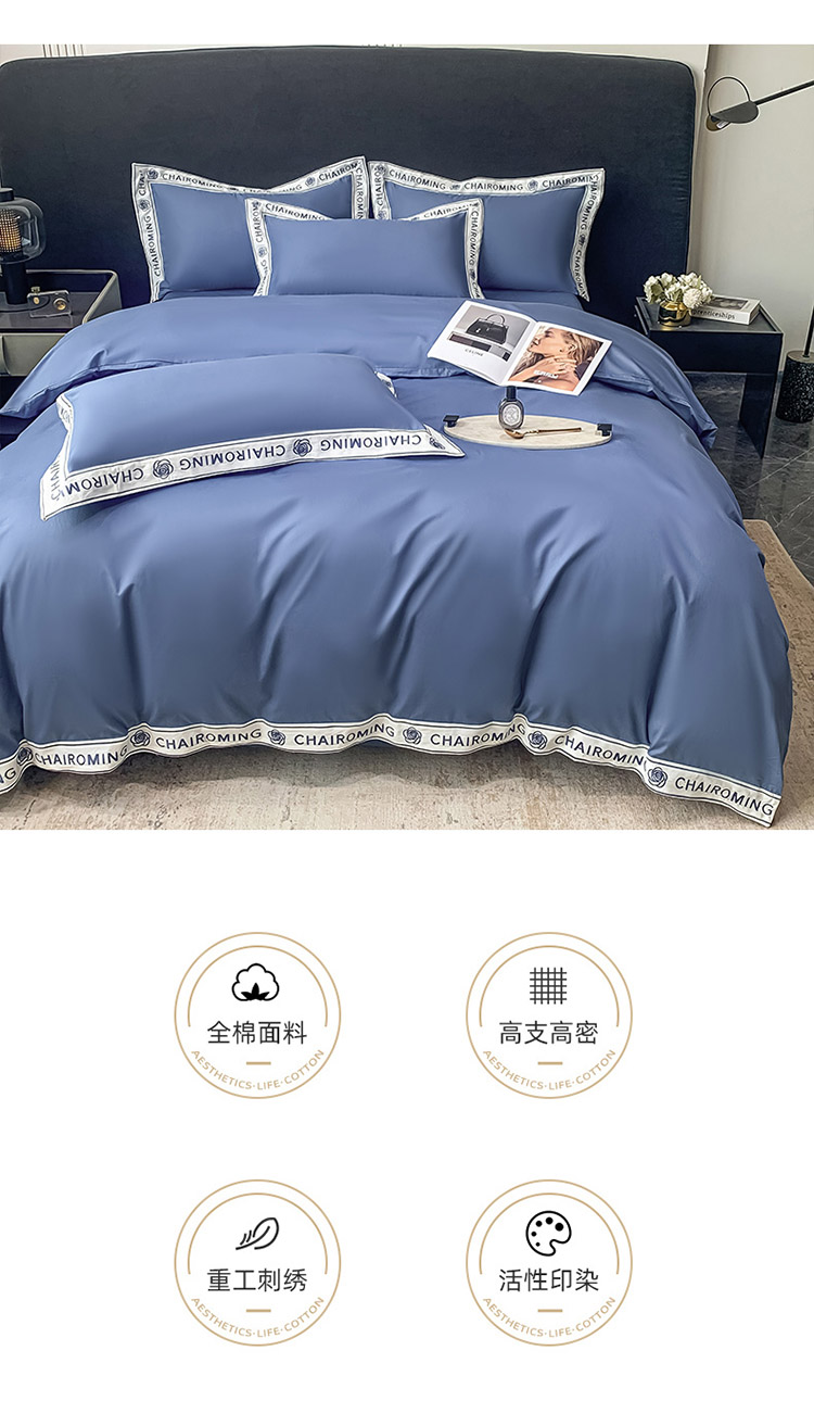 梧桐家居 2023新款13372全棉刺绣宽边四件套-秀色系列 皇家蓝