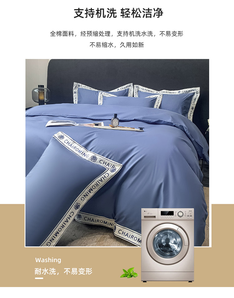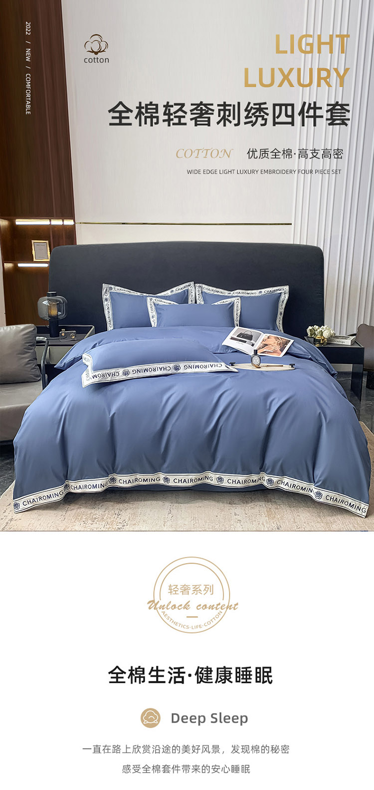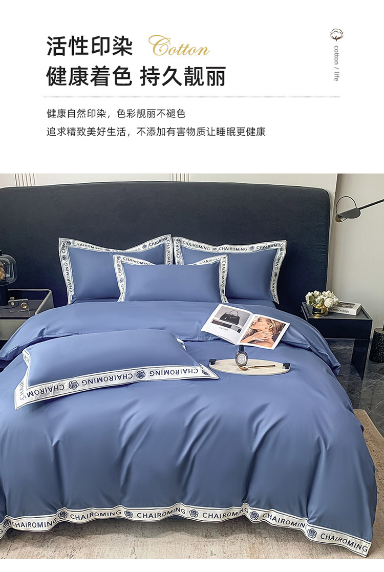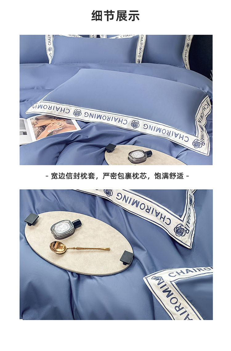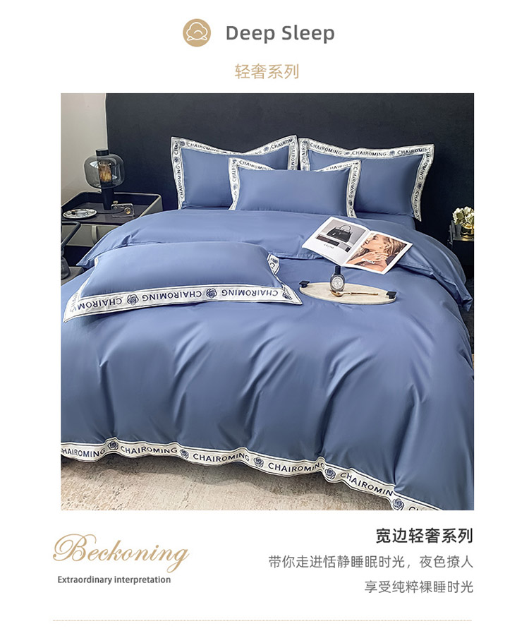 梧桐家居 2023新款13372全棉刺绣宽边四件套-秀色系列 皇家蓝