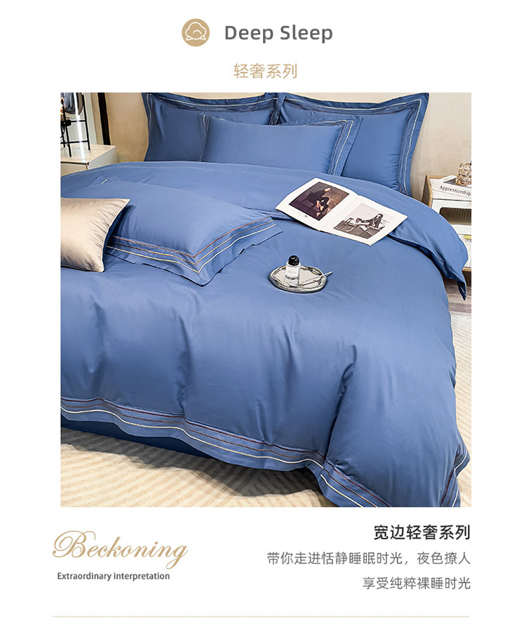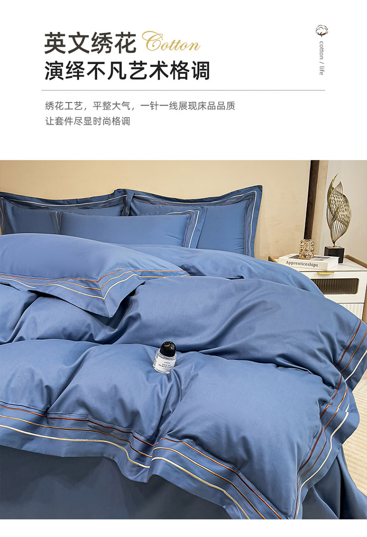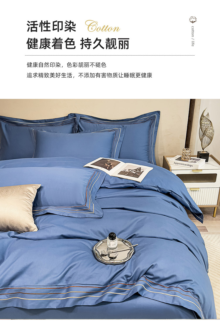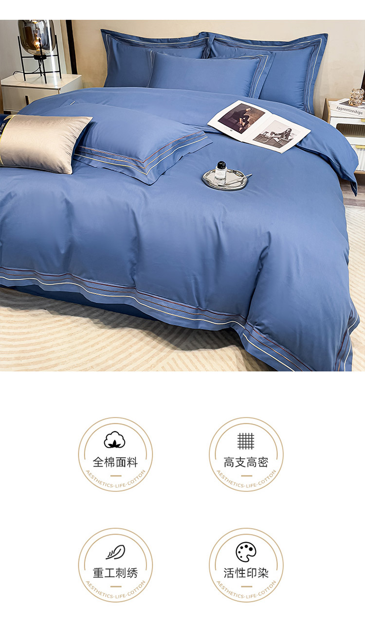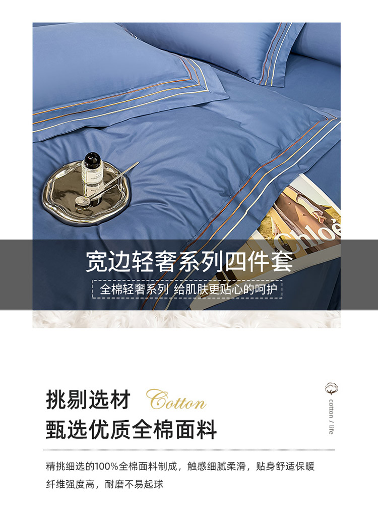 梧桐家居 2023新款13372全棉刺绣宽边四件套-初见系列 初见-皇家蓝