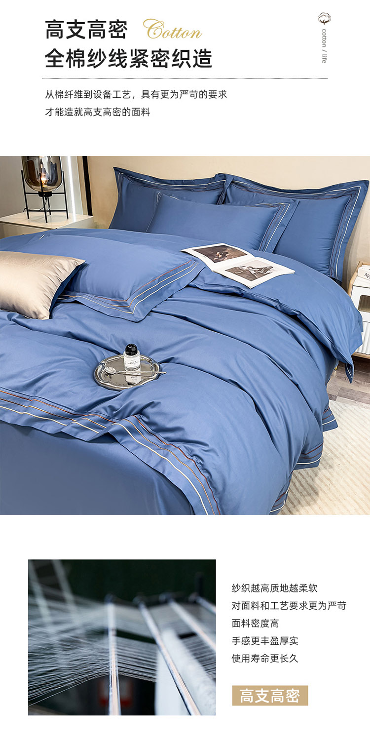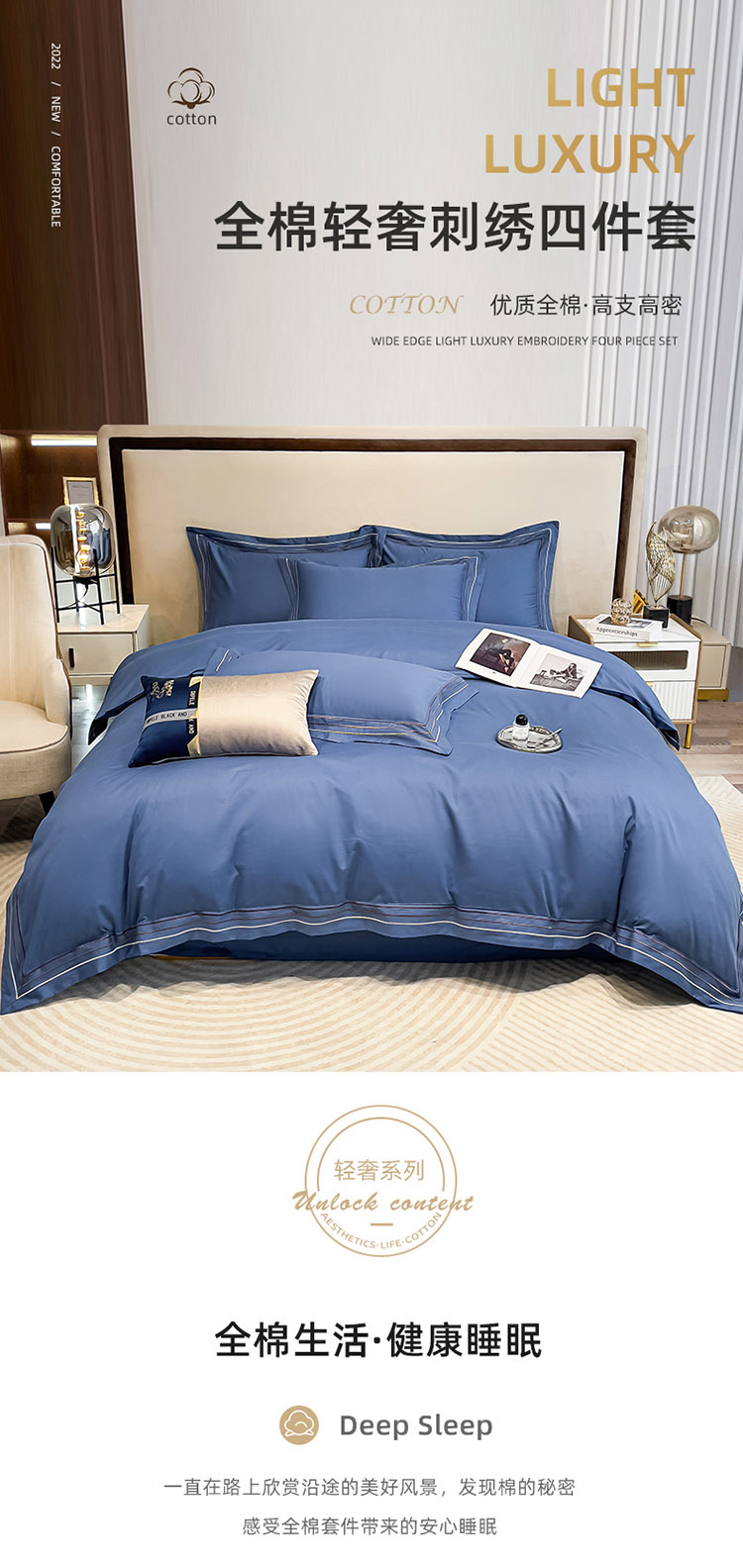 商品名称:梧桐家居 2023新款13372全棉刺绣宽边四件套-初见系列 初见-皇家蓝
