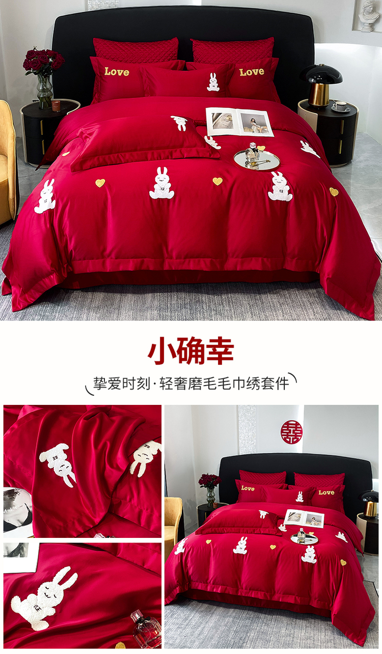 商品名称:优悦 2023新款轻奢磨毛婚庆毛巾绣四件套 小确幸