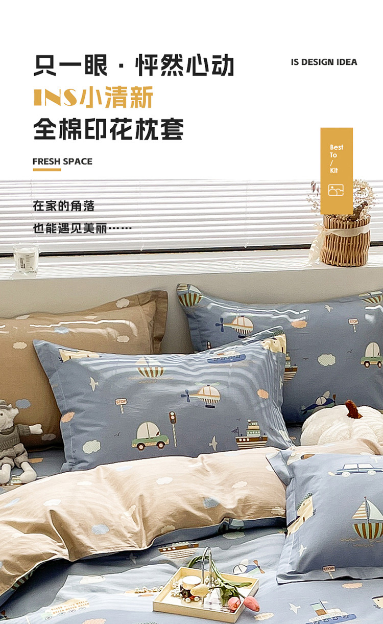 绵庭 2023新款全棉印花枕套 玩具乐园-兰