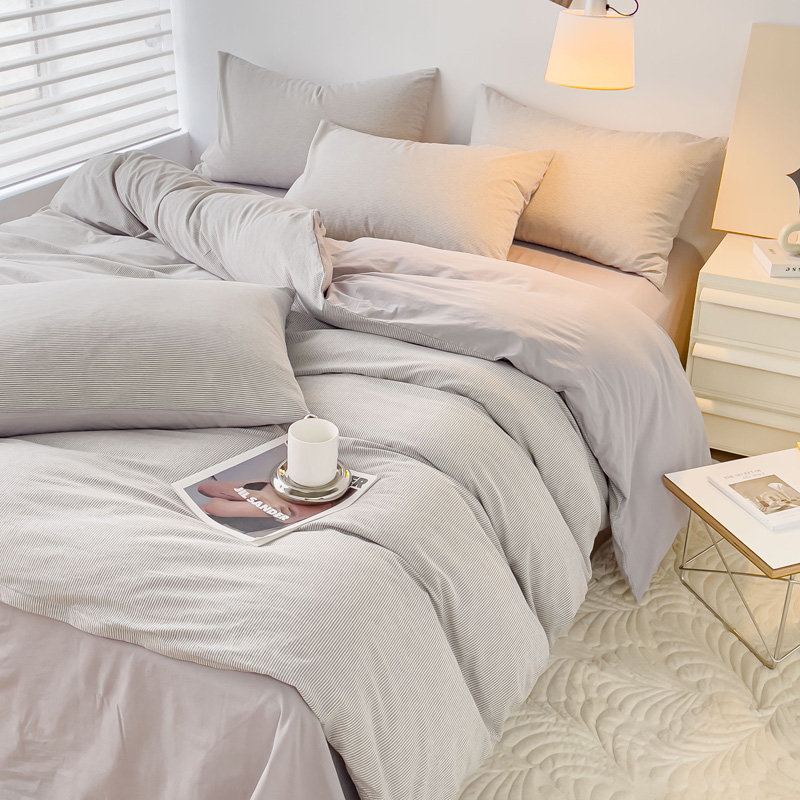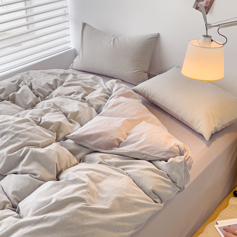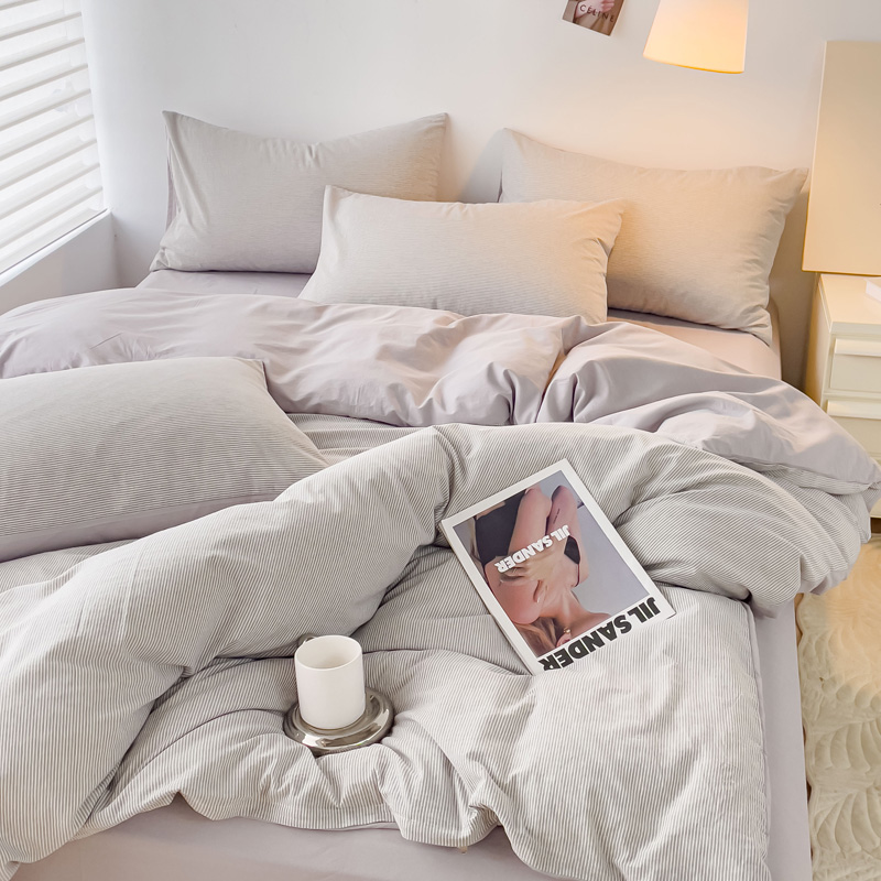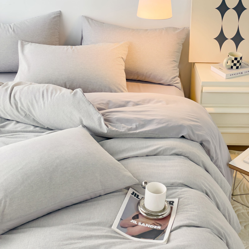 当前位置: 91家纺网 > 商品网购 > 床品套件 > 四件套 > 水洗棉四件套 > 金丝鸟 2023新款全棉水洗棉简单款条纹系列 简约条纹 浅灰