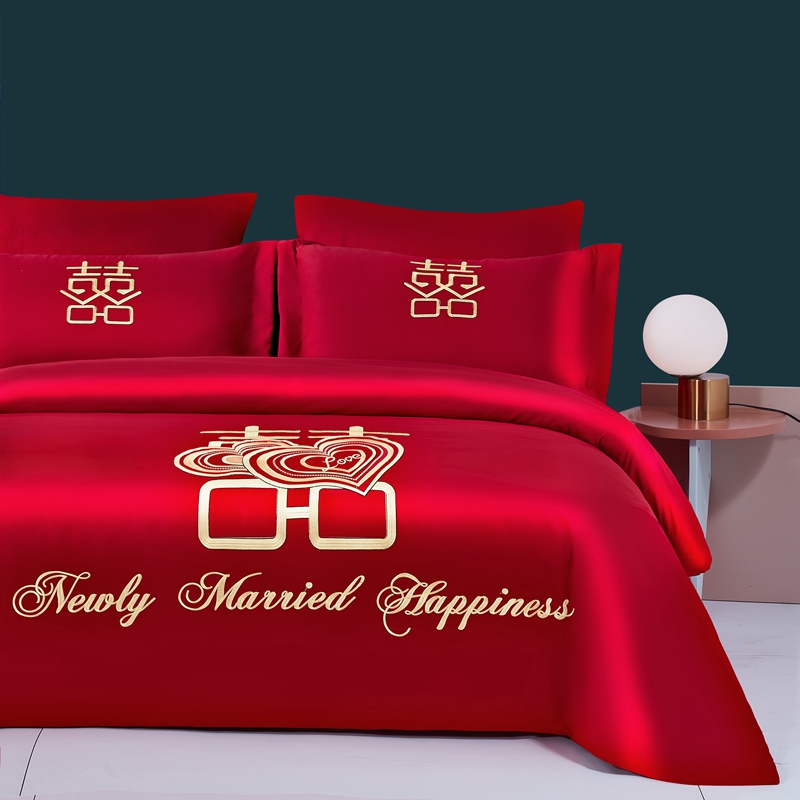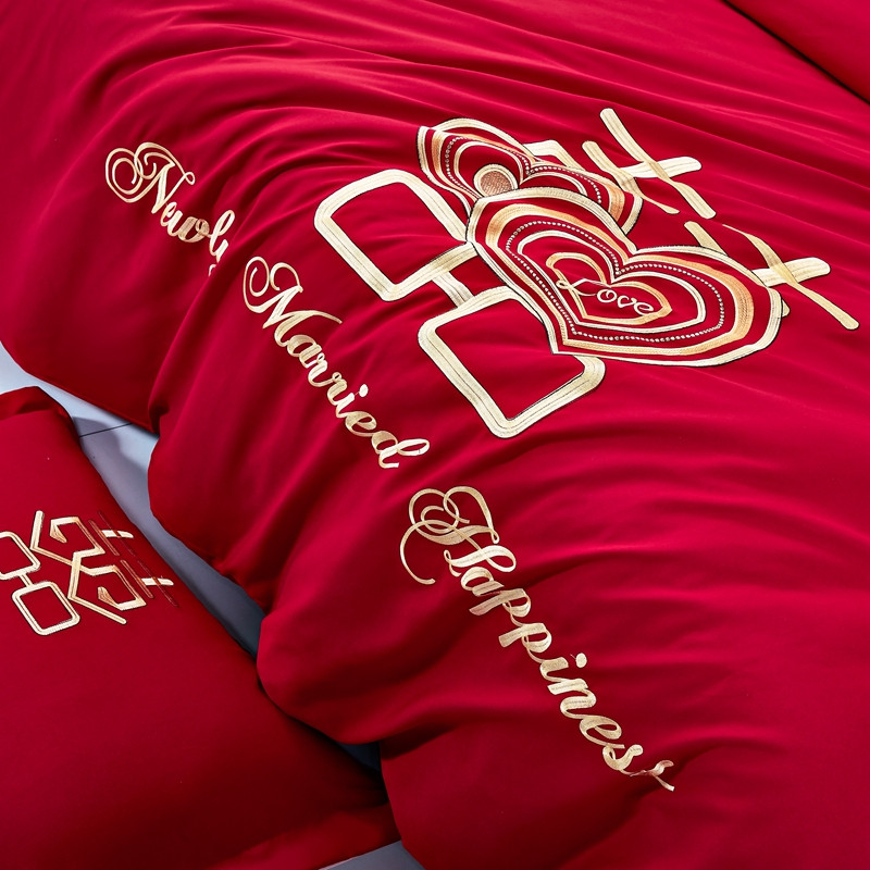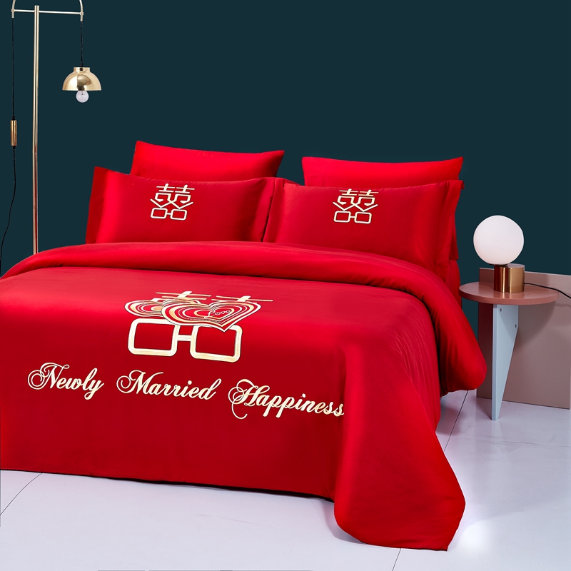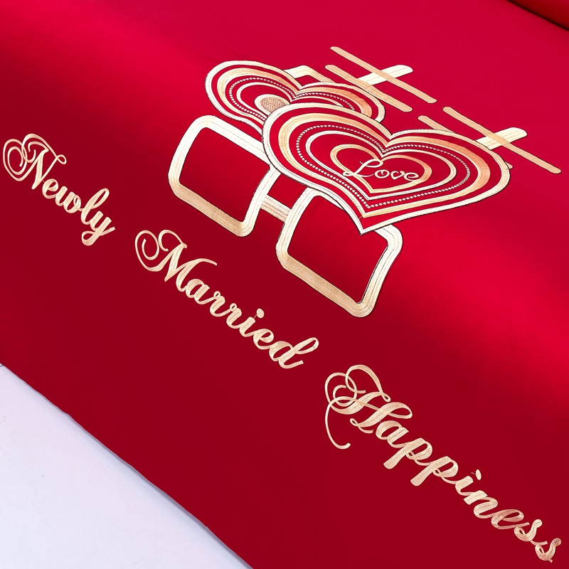 当前位置: 91家纺网 > 商品网购 > 床品套件 > 四件套 > 全棉普通四件套 > 2025新款亲肤棉绣花刺绣婚庆四件套 心心相印