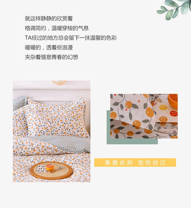 多品家纺 2023新款12868全棉双针单枕套 甜蜜橘