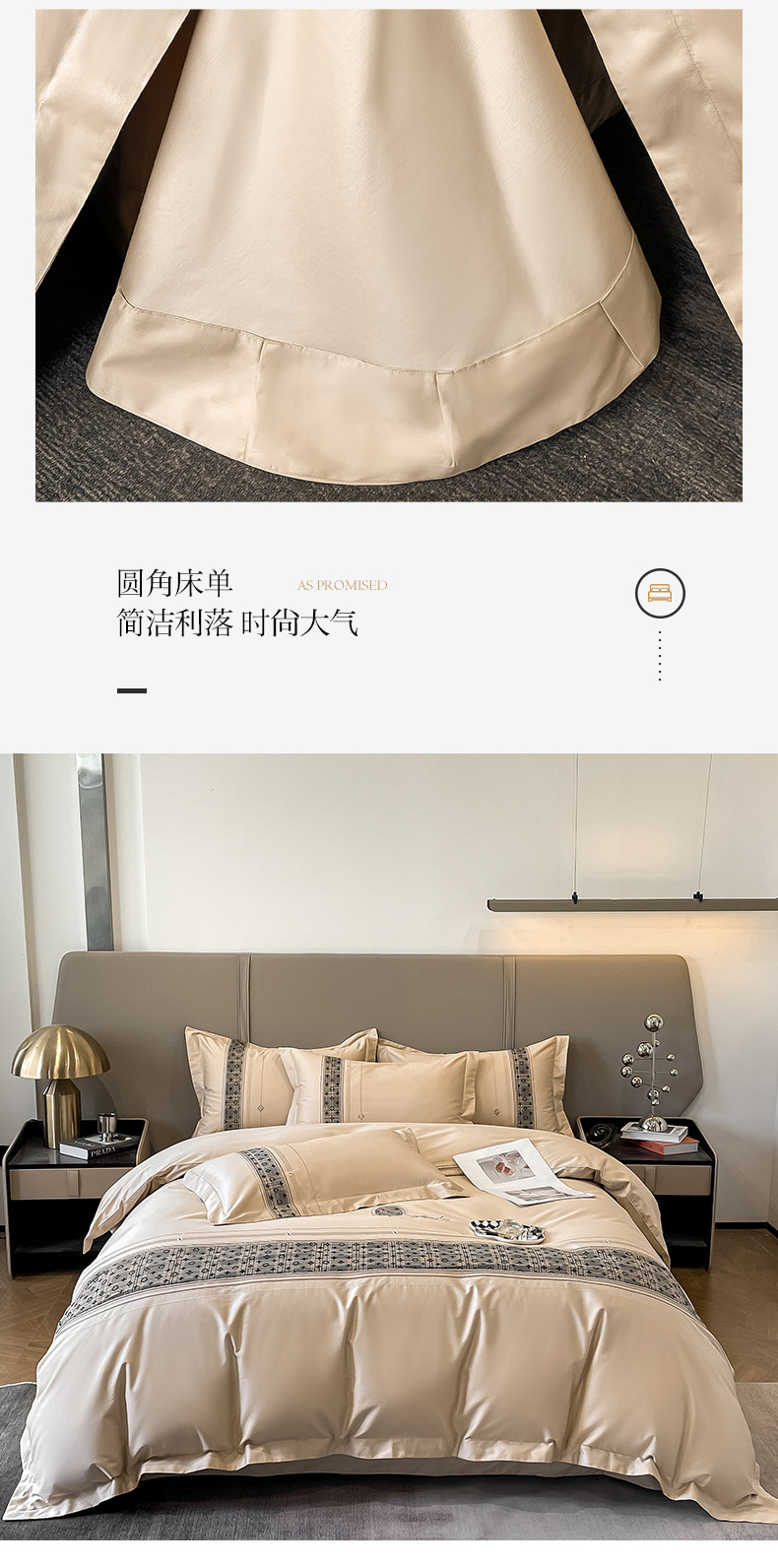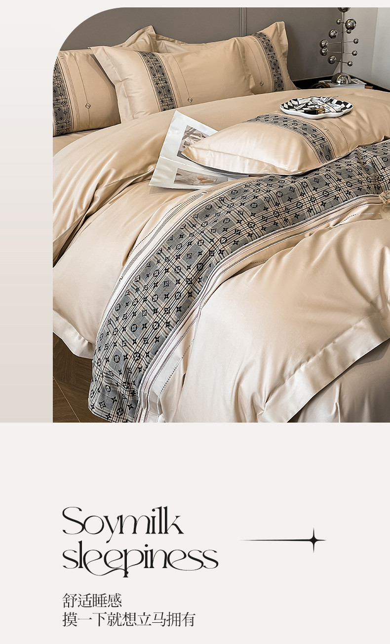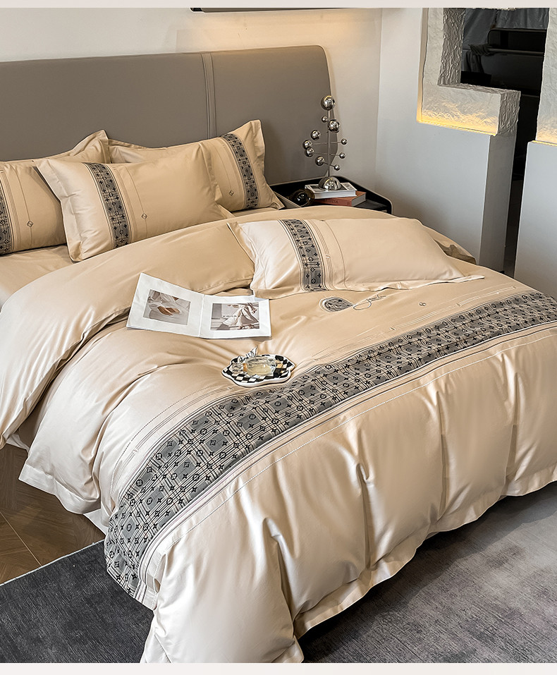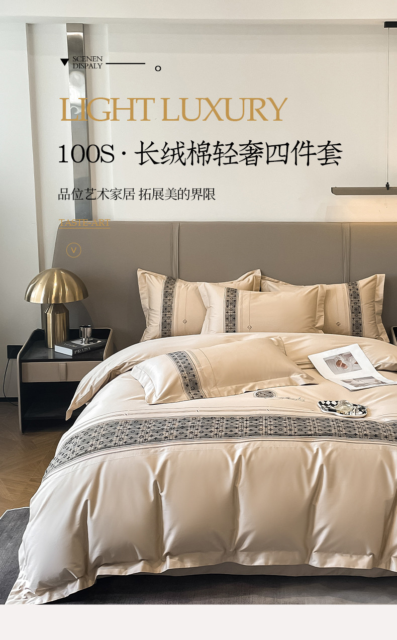 魅都100长绒棉简约轻奢贴布绣四件套-莫西卡 莫西卡-香槟金