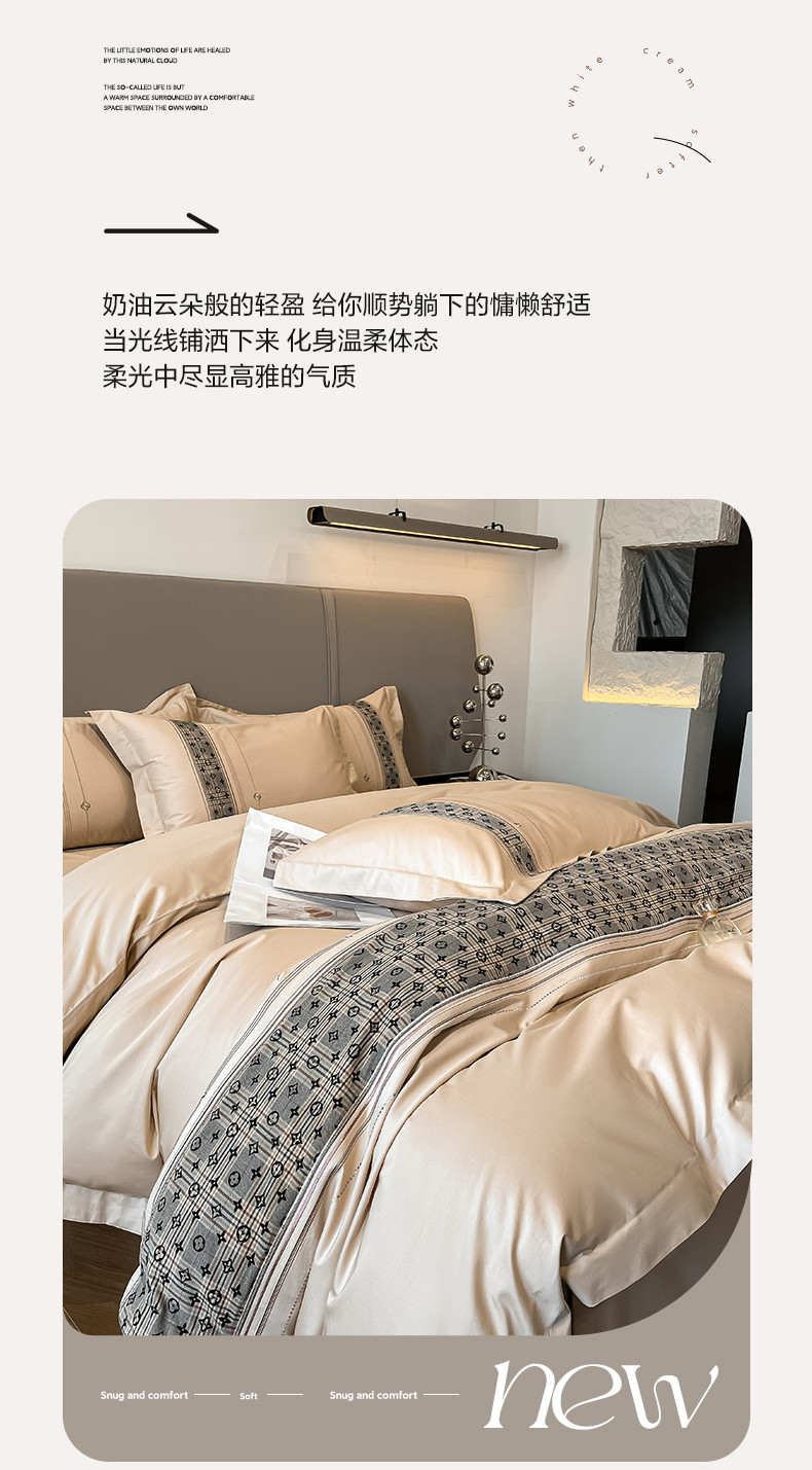 (总)魅都 2025新款100s长绒棉简约织带轻奢风四件套-罗伊,爱马橙,亮粉,浅灰,香槟金,香芋紫