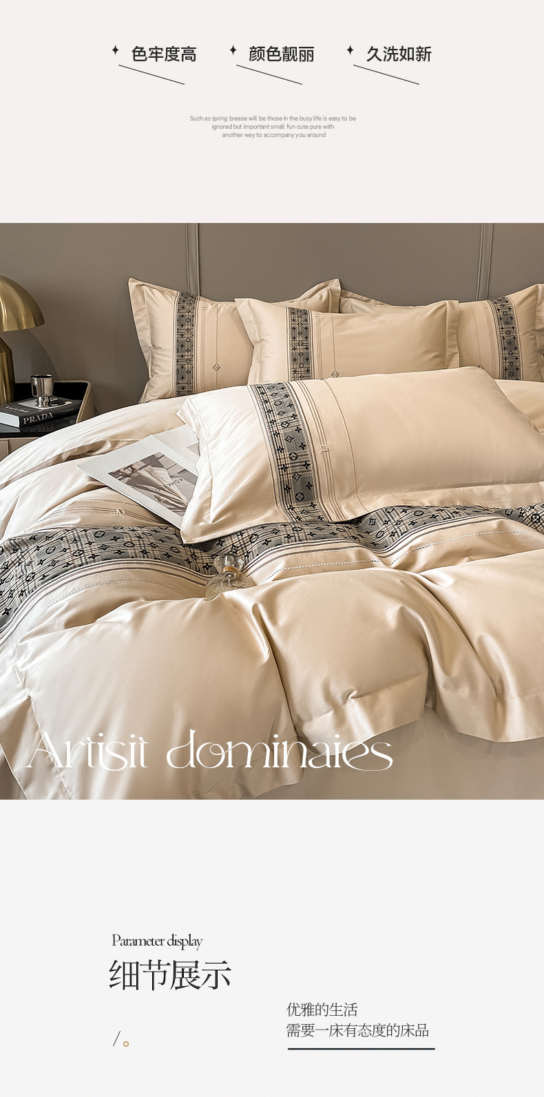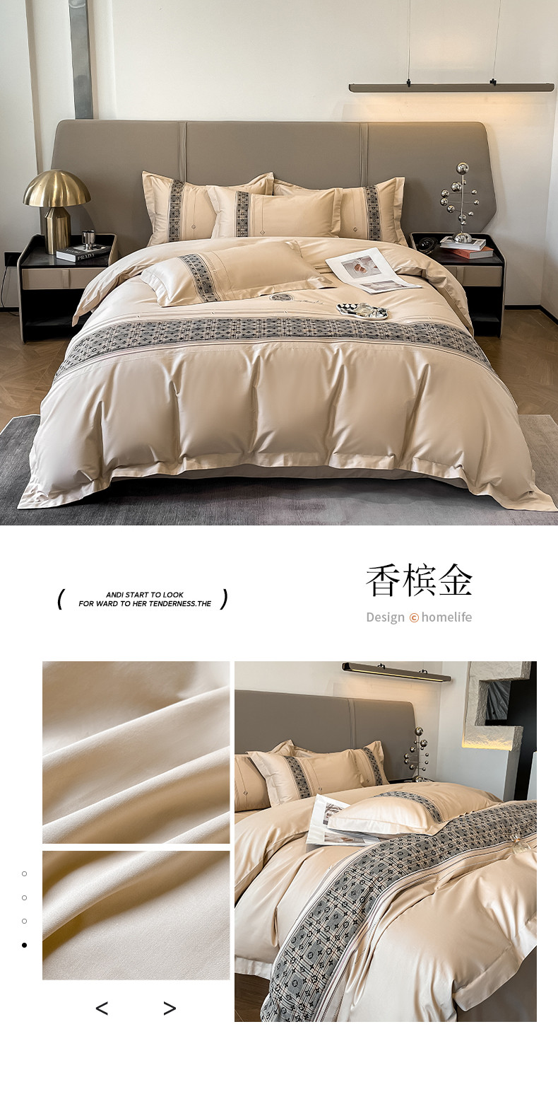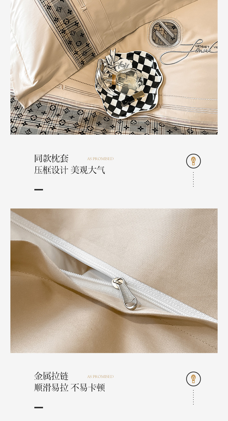 商品名称:魅都100长绒棉简约轻奢贴布绣四件套-莫西卡 莫西卡-香槟金