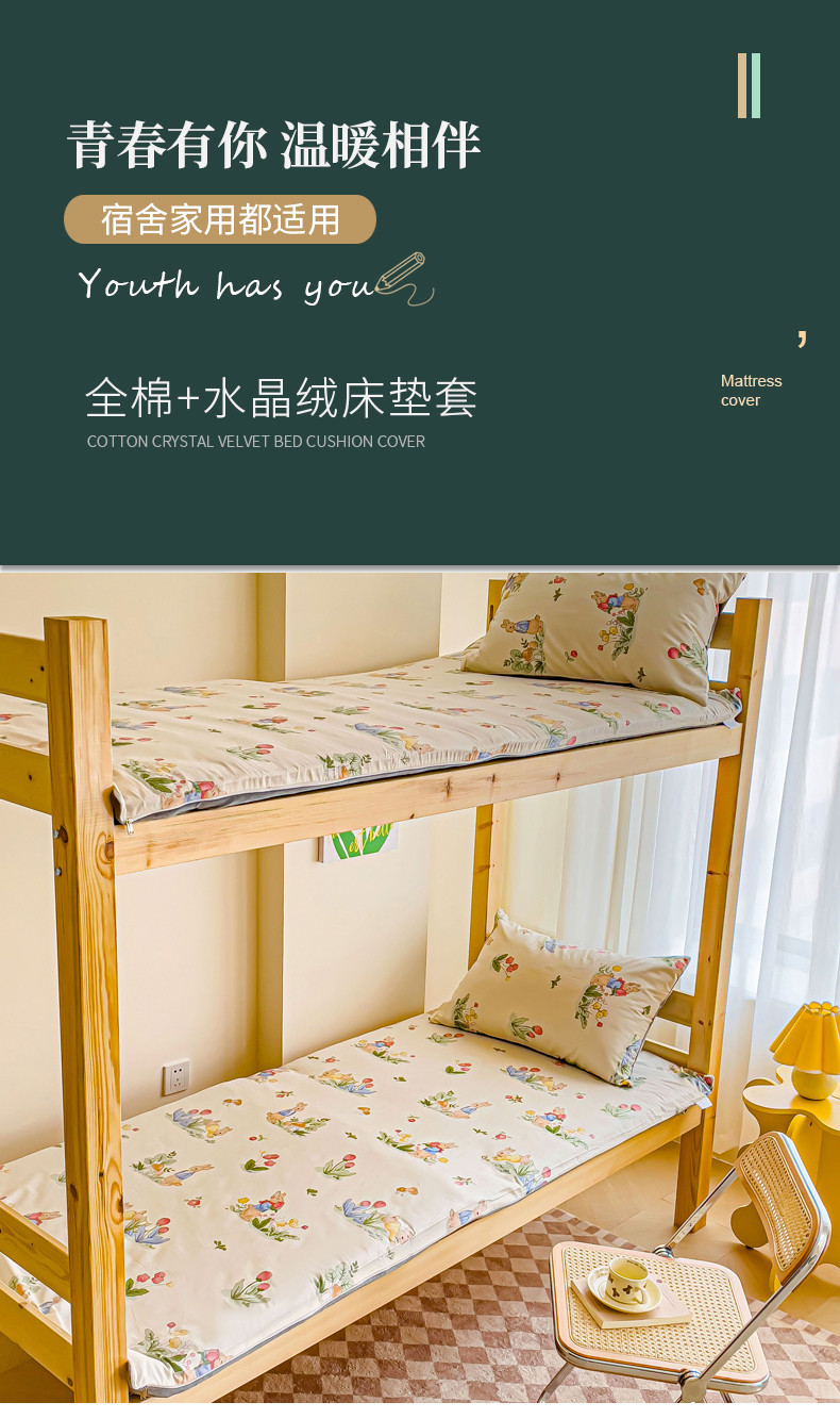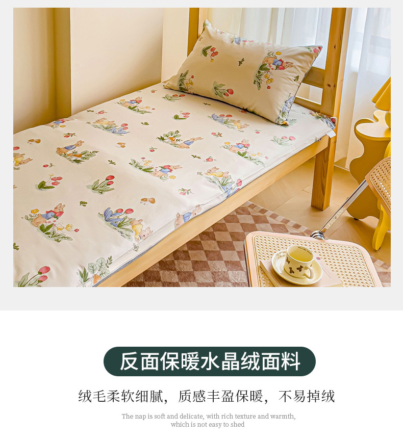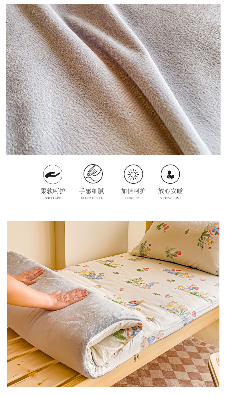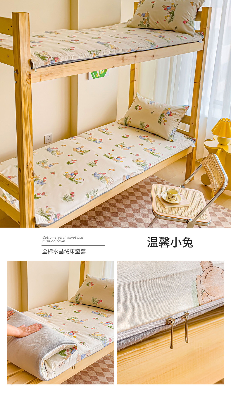 当前位置: 91家纺网 > 商品网购 > 床垫/床褥 > 普通床垫 > 金丝鸟 2023新款全棉加水晶绒棉加绒床垫套 温馨小兔