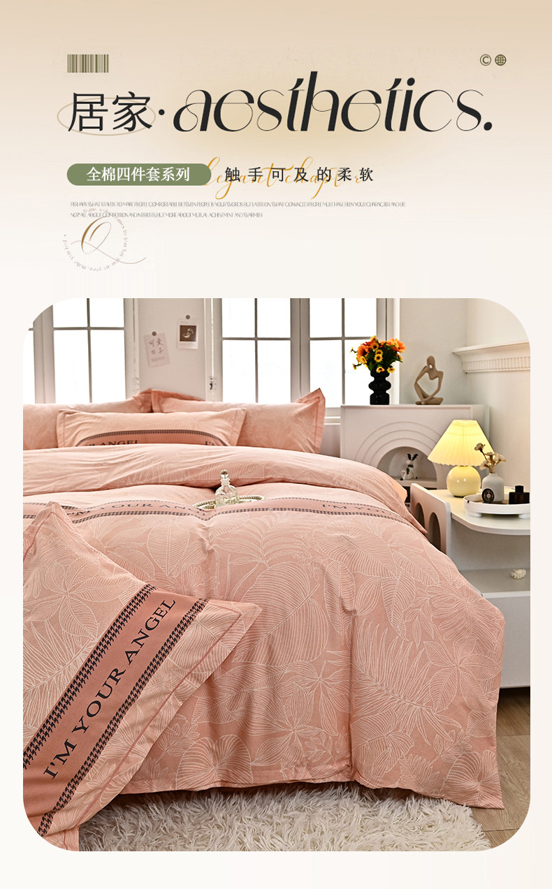 喜四方 2024新款全棉磨毛全棉印花四件套前程似锦粉