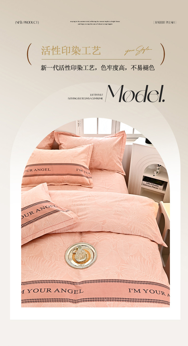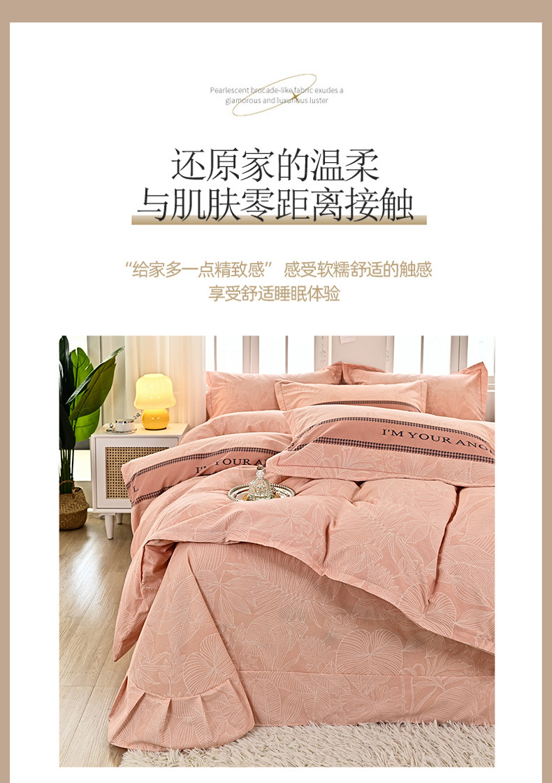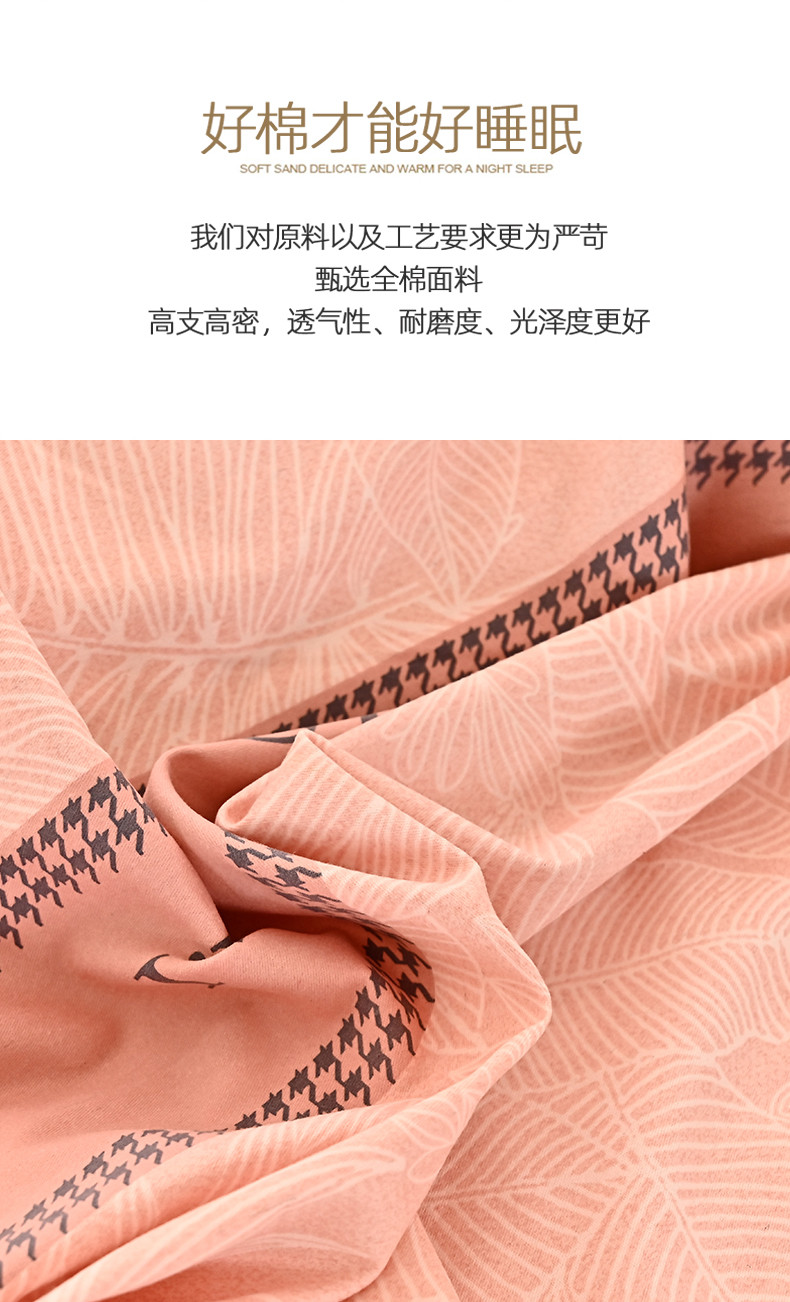 商品名称:喜四方 2024新款全棉磨毛全棉印花四件套前程似锦粉