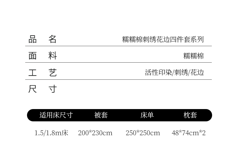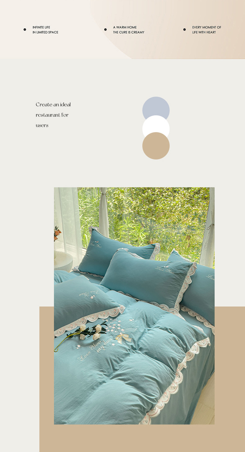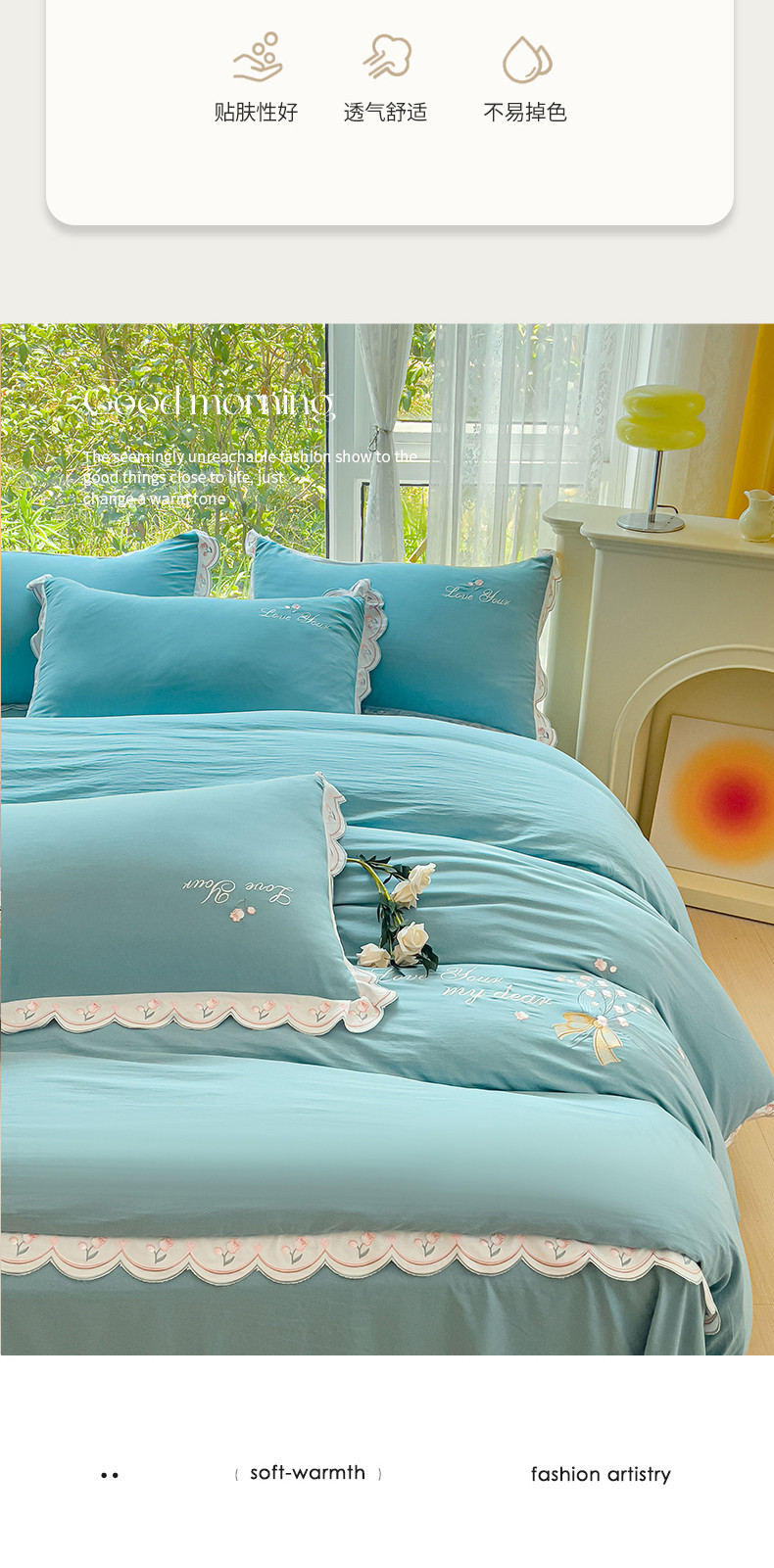 商品名称:雪夫人 2023新款糯糯棉刺绣花边四件套铃兰花语 铃兰花语-宝石蓝