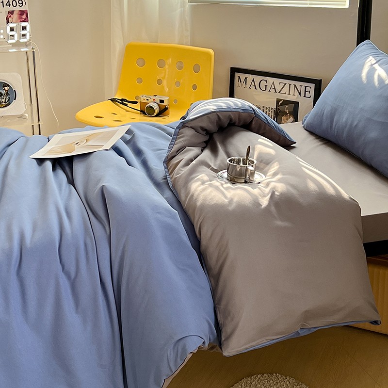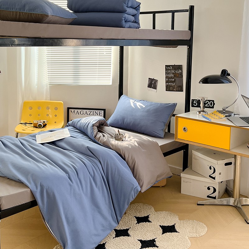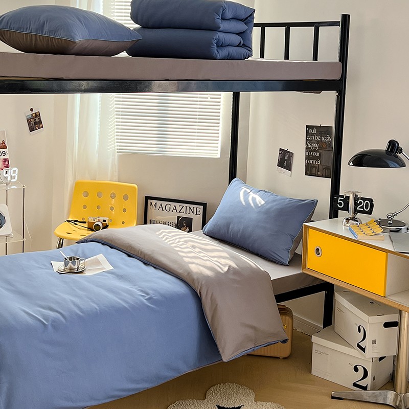 当前位置: 91家纺网 > 商品网购 > 床品套件 > 四件套 > 化纤普通四件套 > 蓝淋家纺 2023新款水洗棉学生宿舍亲肤三件套四件套 浅蓝灰+浅灰