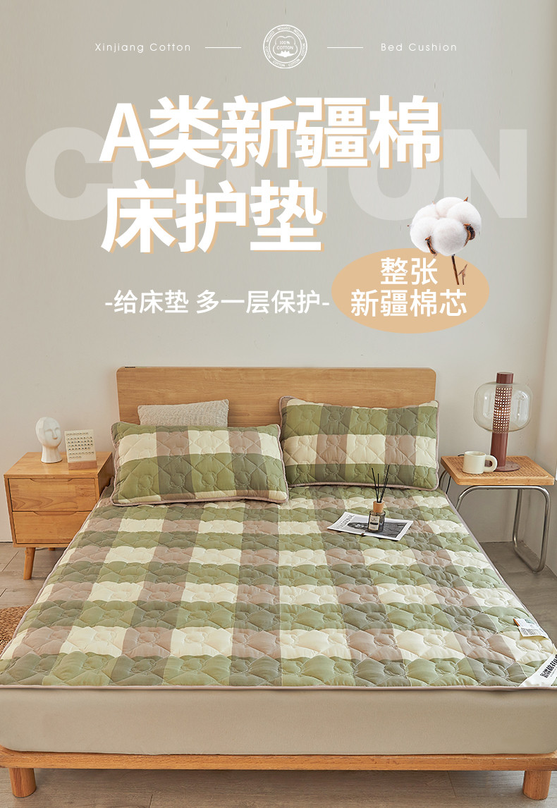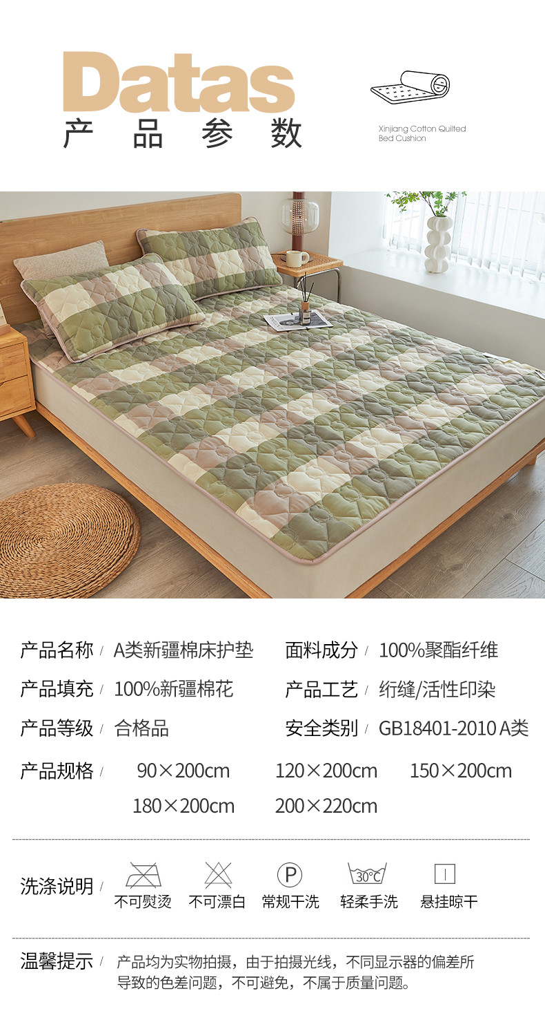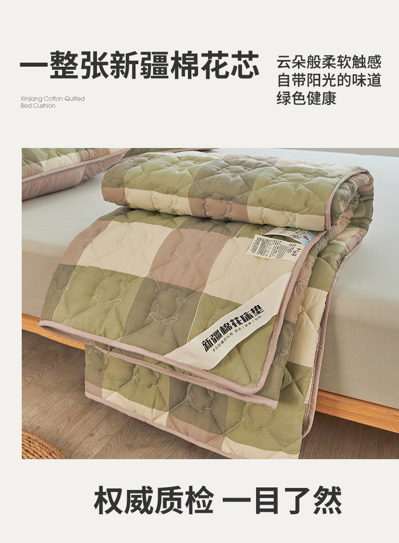 商品名称:千百笠 2023新疆棉花床褥软垫床护垫家用床垫软垫可折叠垫子床褥 典雅-绿格